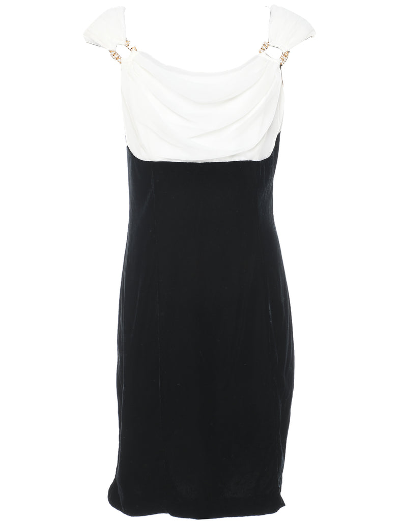 Two-Tone Black & Off-White Backless Evening Dress - M