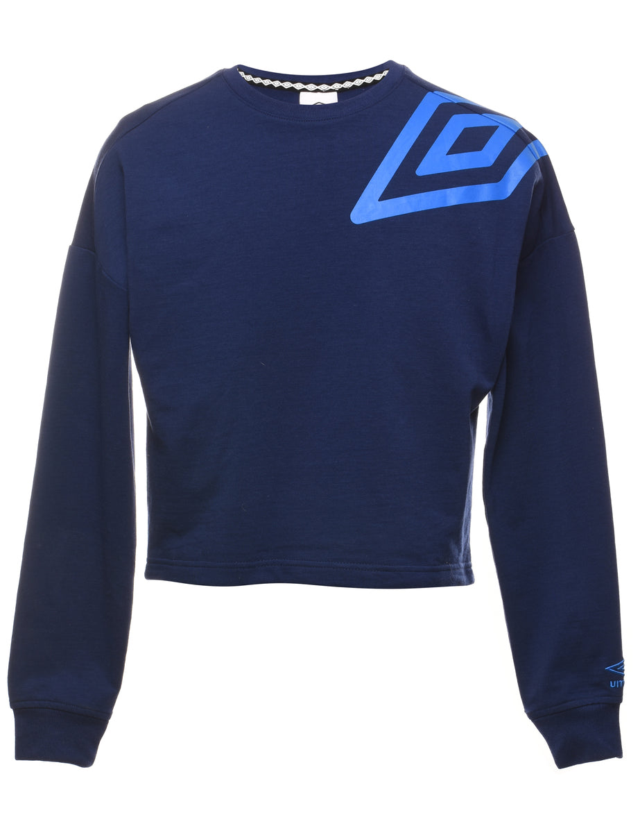 Vintage Umbro Navy Cropped Printed Sweatshirt - S