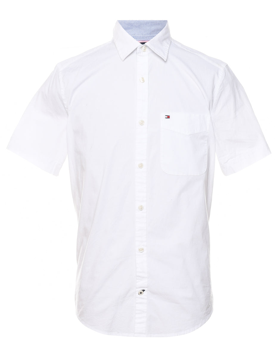White Tommy Hilfiger short sleeve shirt complete with a classic collar.