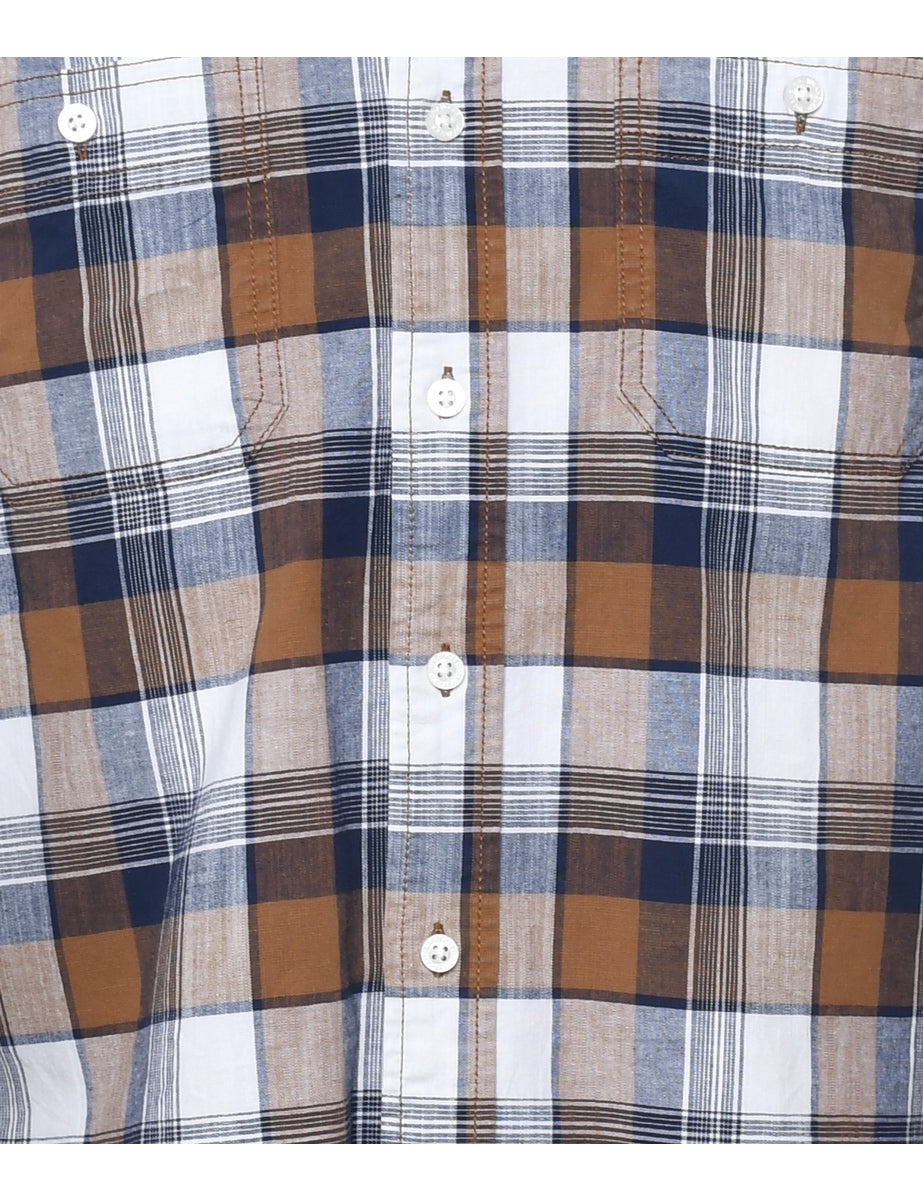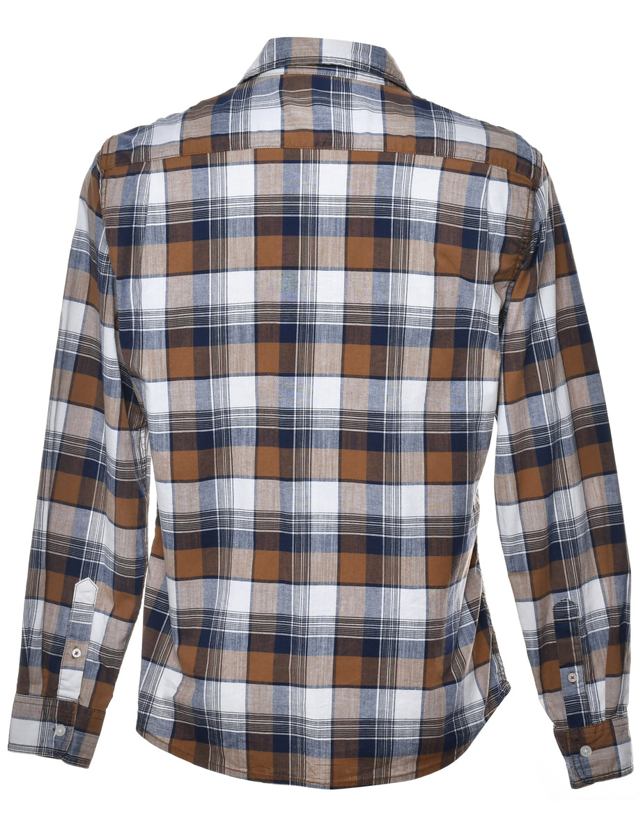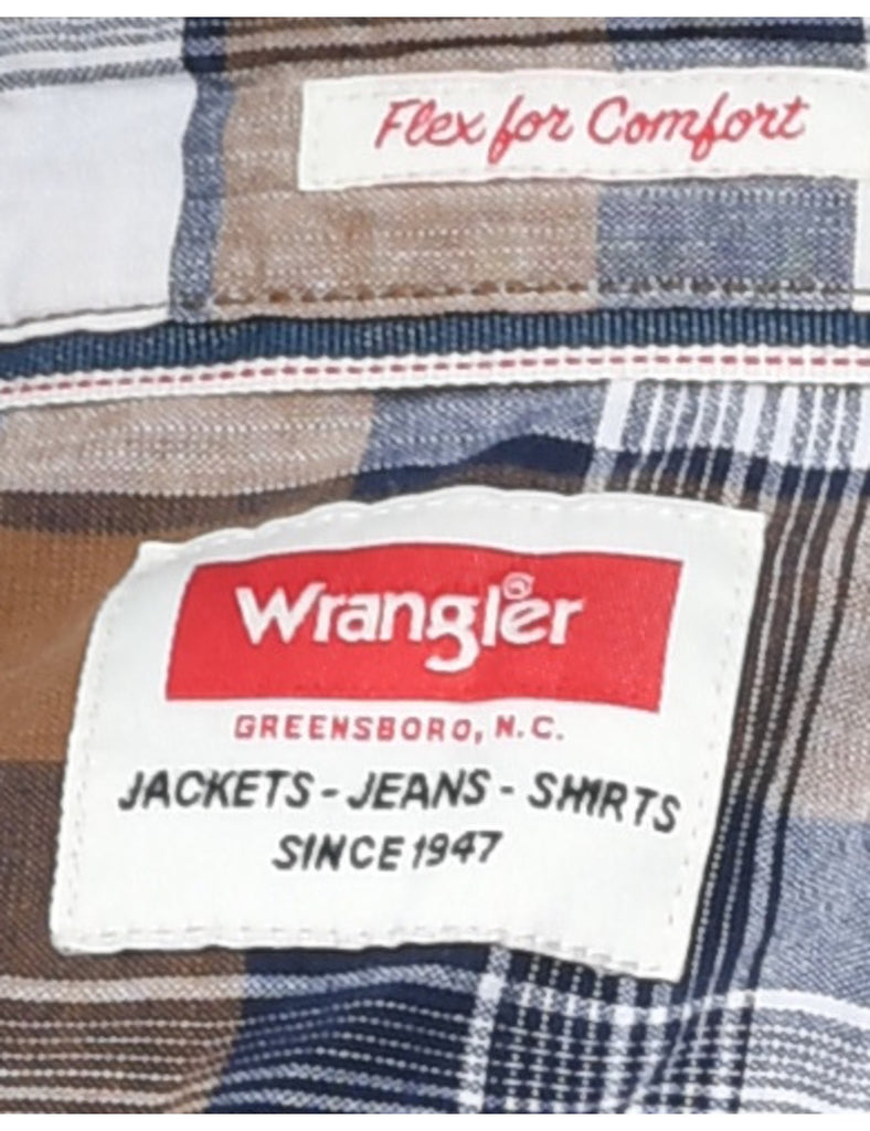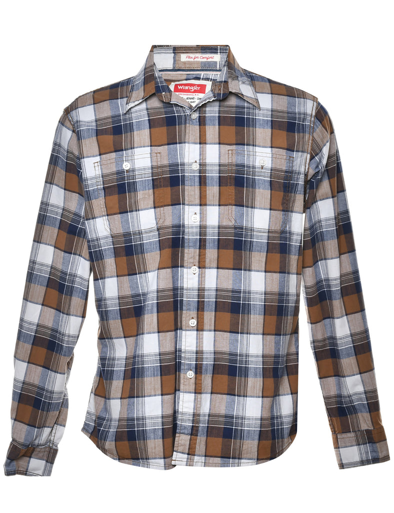 Wrangler checked navy & brown shirt complete with a classic collar.