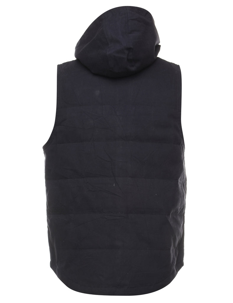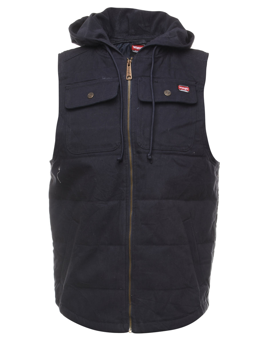 Wrangler navy workwear style zip-front waistcoat complete with quilted lining and a hood.