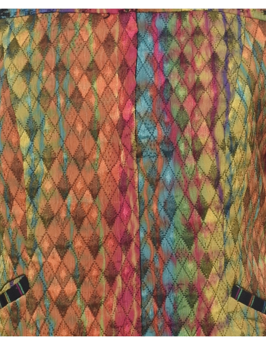 Zip front jacket comes in multi-colour with multiple pockets and shoulder pads.