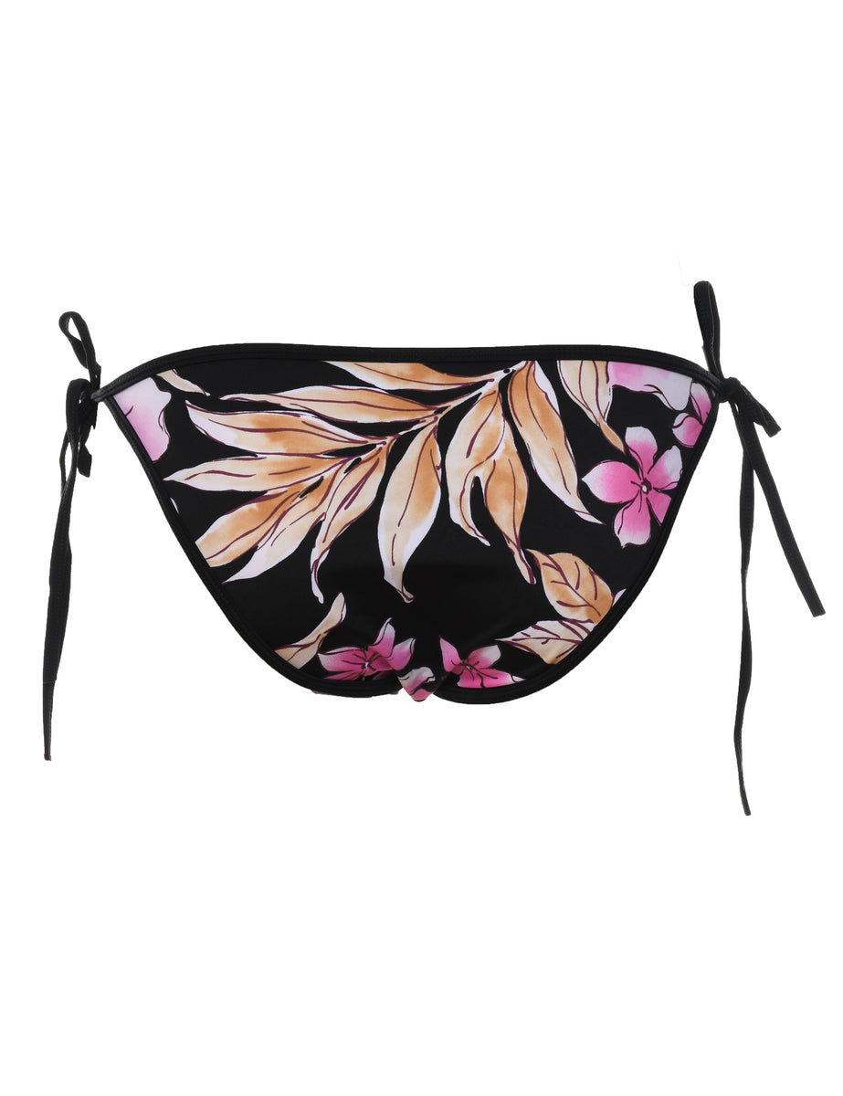 Vintage Floral Black & Pink Strappy Bikini Bottoms - XS