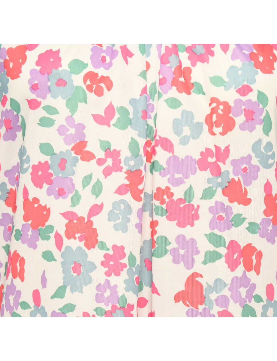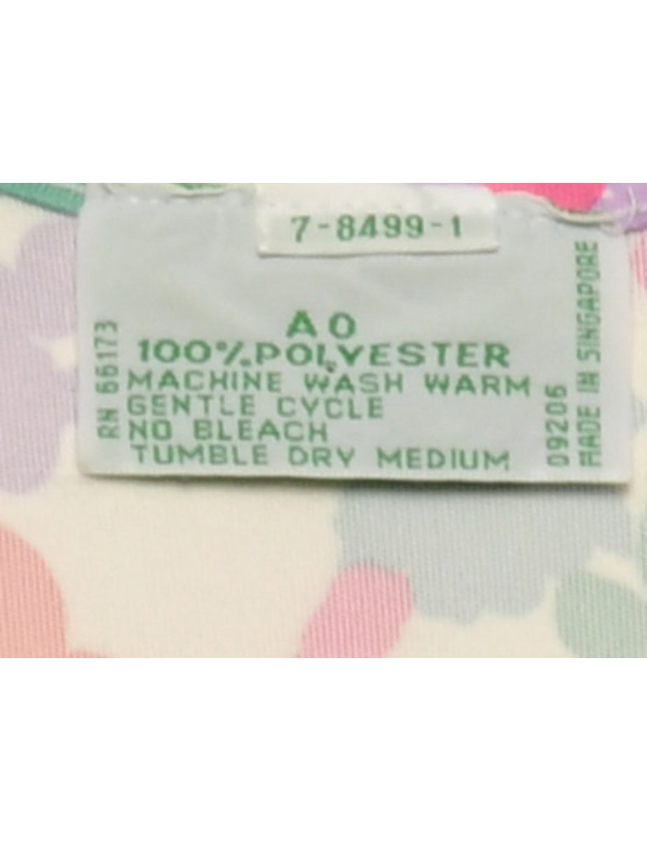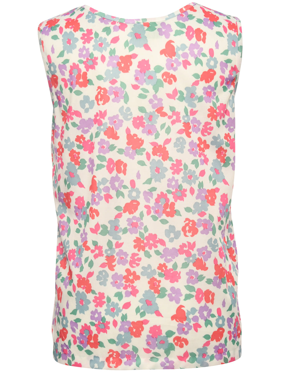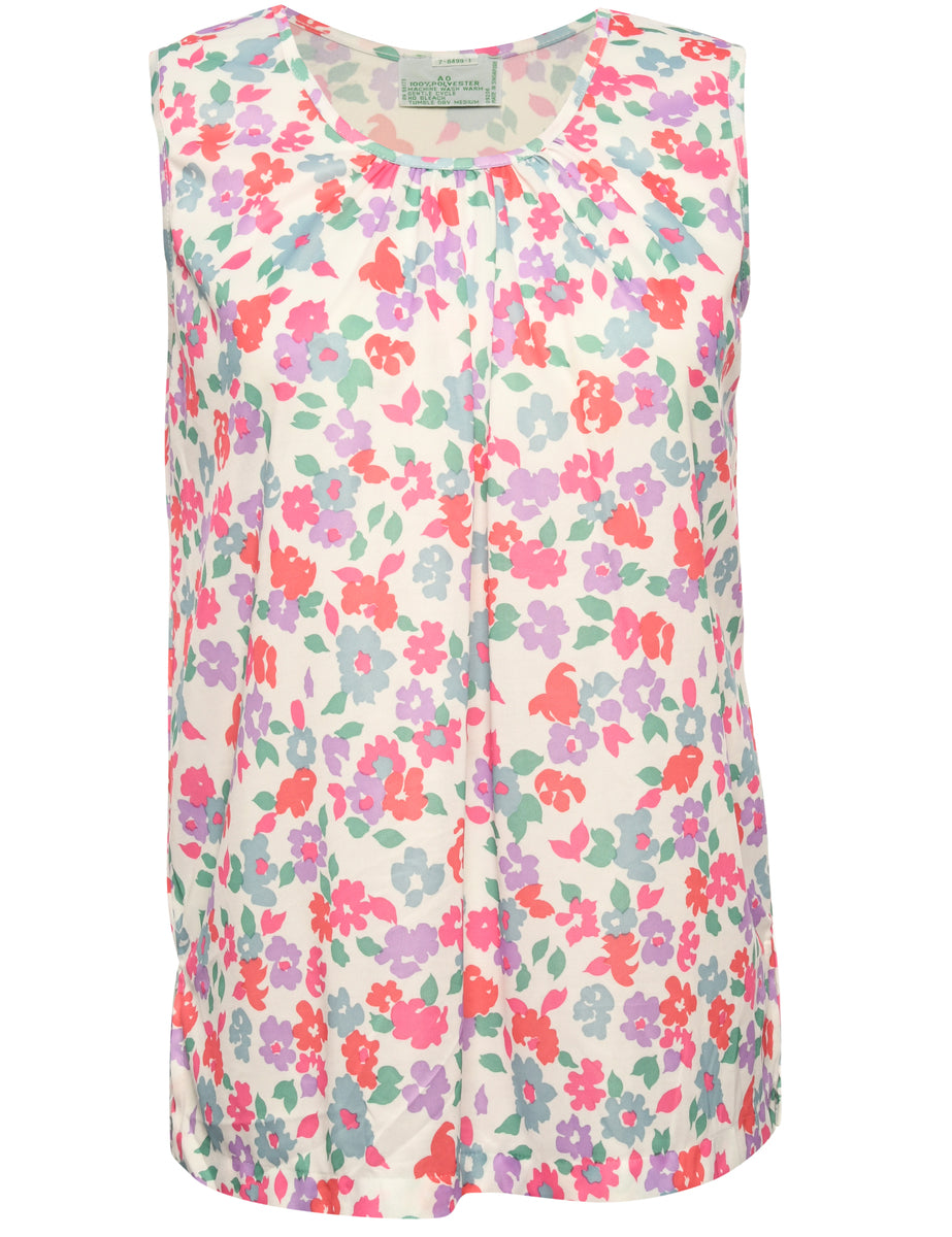 Vintage Floral Pink & White Sleeveless Blouse - M