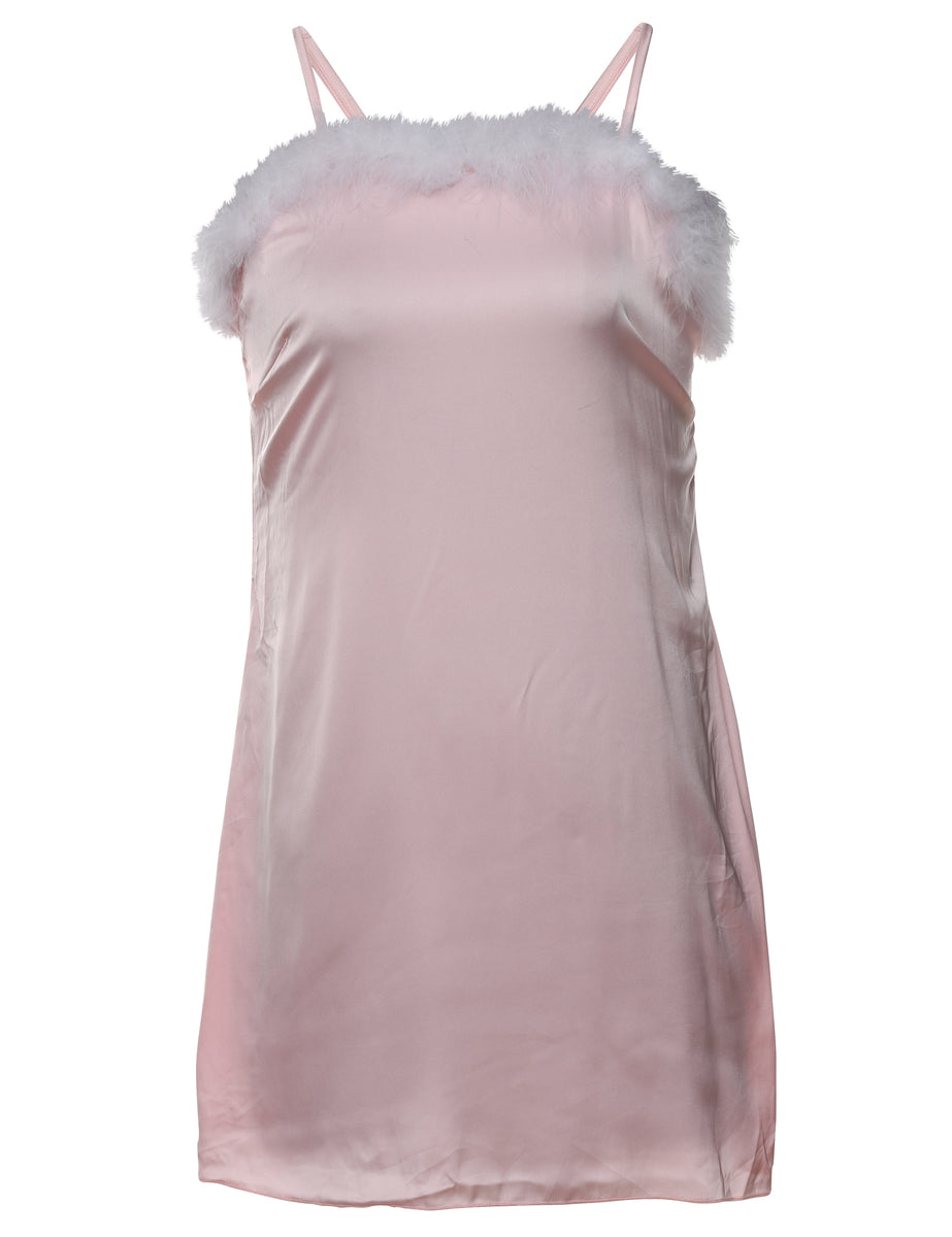 Vintage Pale Pink Faux Fur Trim Y2K Slip Dress - XS