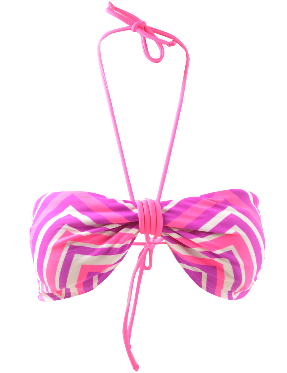 Pink striped bikini top complete with full lining and a built-in-bra.
