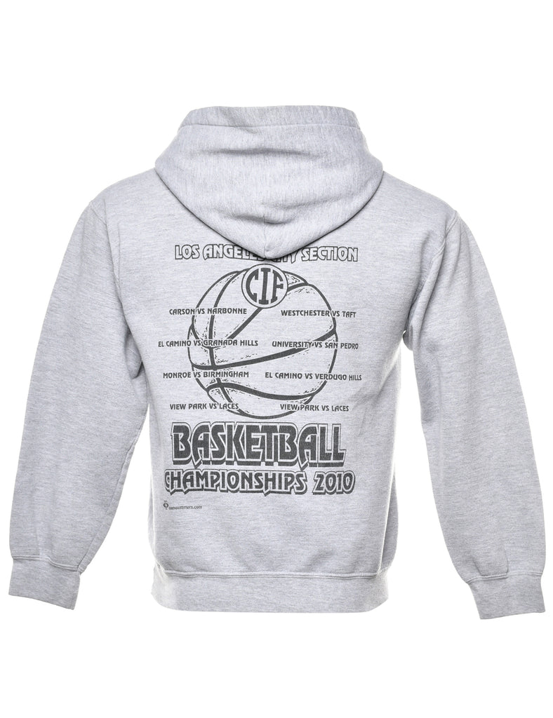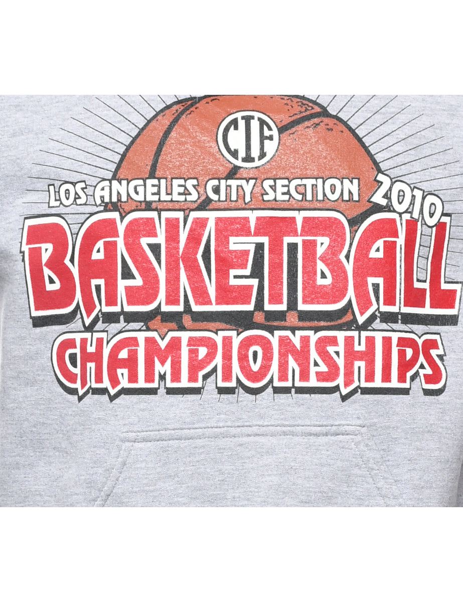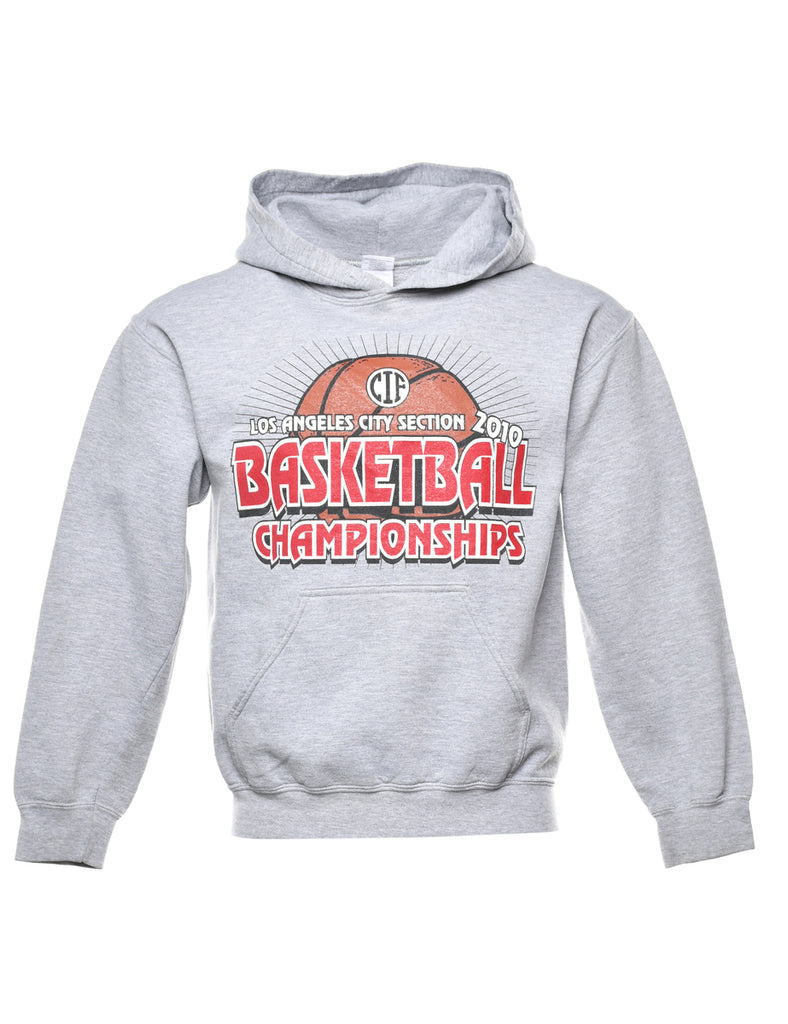 Gildan basketball championships printed hoodie in grey with ribbed cuffs and waistband.