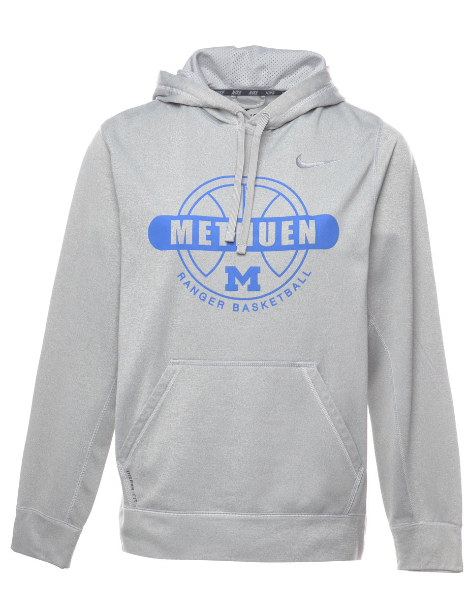 Petites nike methuen basketball printed hoodie in grey with a drawstring neck and one pocket.