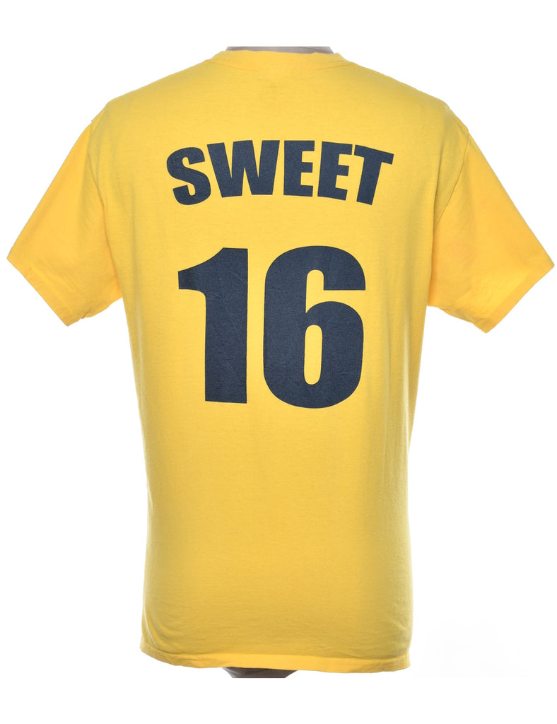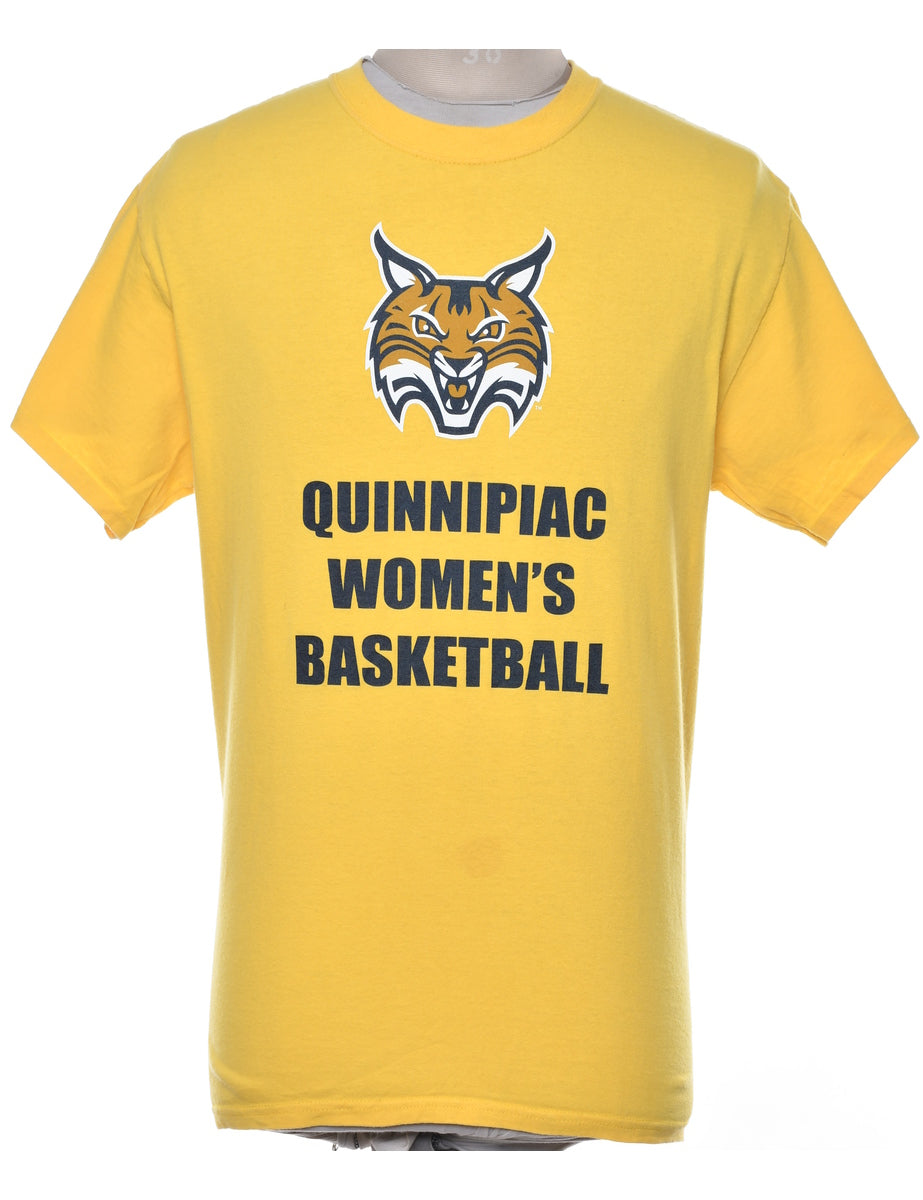 Basketball quinnipiac printed t-shirt comes in yellow with a round neck.