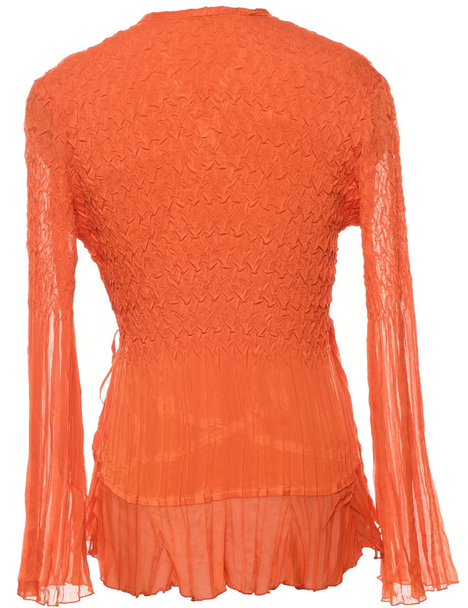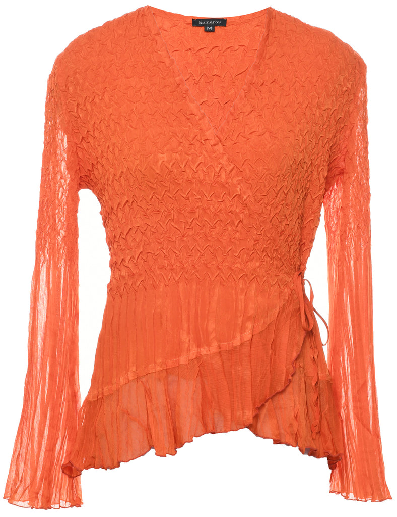 Crinkle top comes in orange with tie detail and a cross-over front.