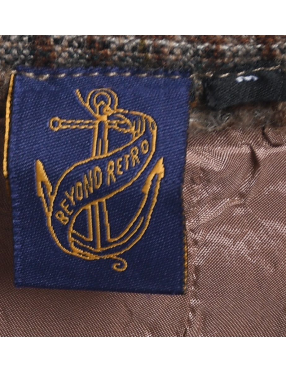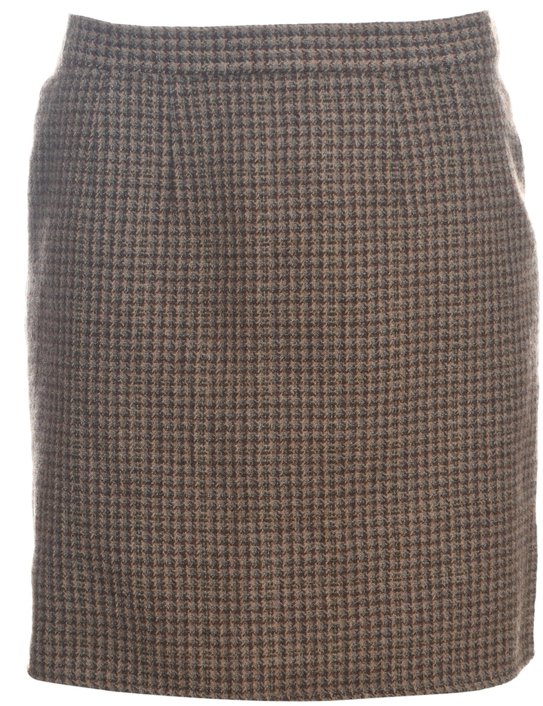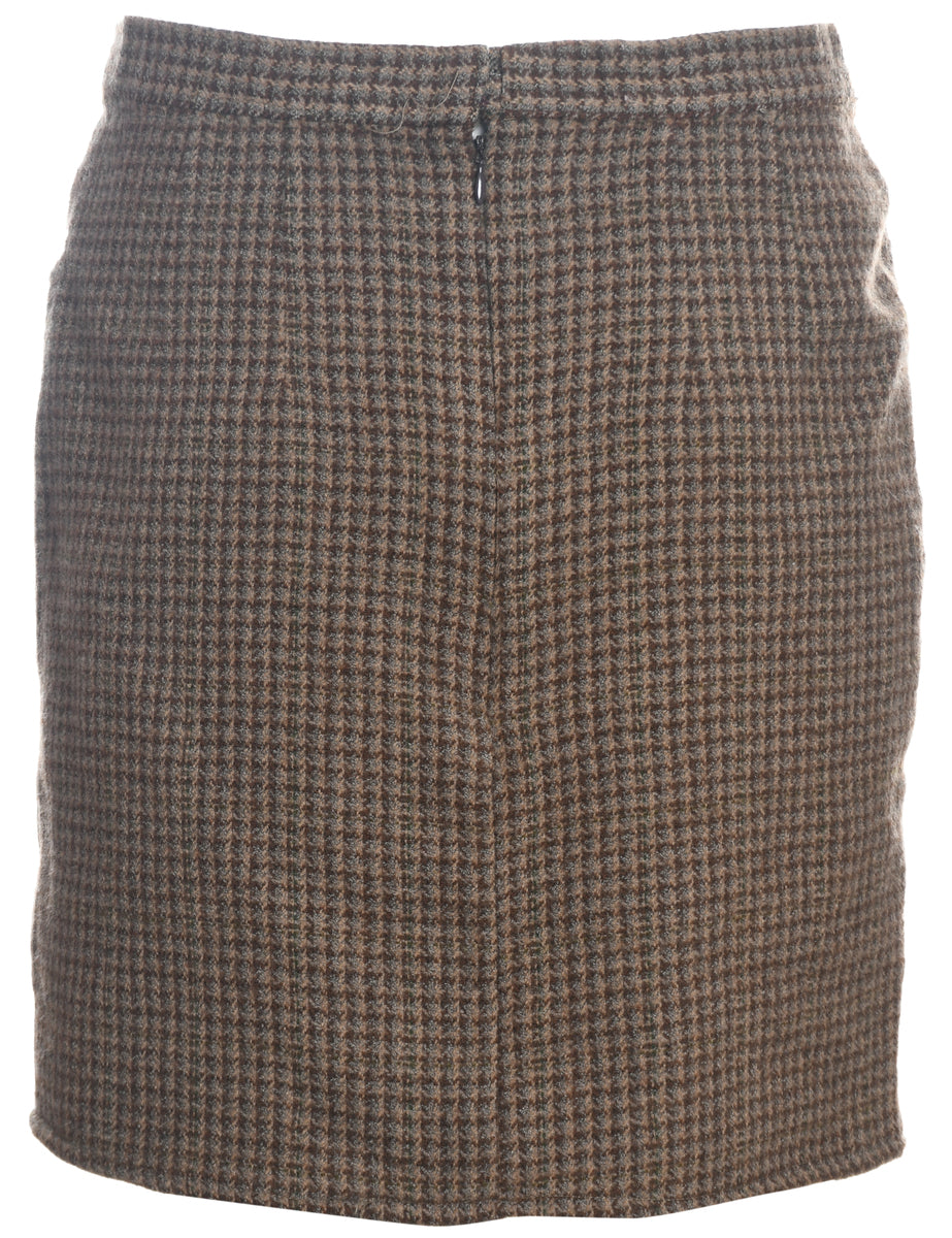 Checked pattern cropped wool skirt in brown with back zipper. From the brand Beyond Retro Label.