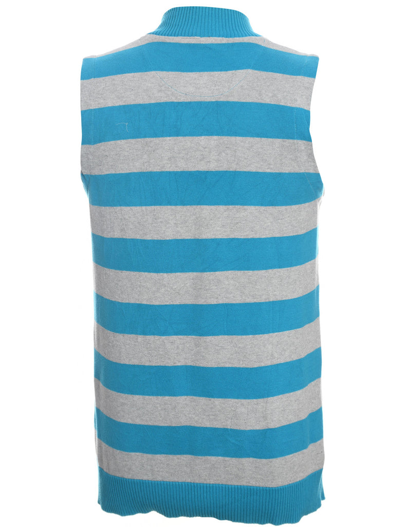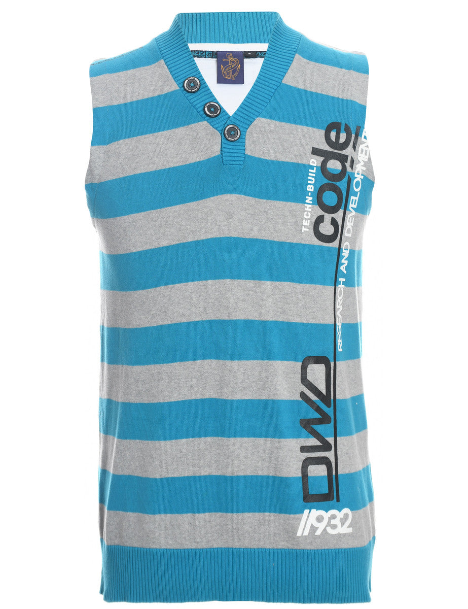 Striped sweater vest in turquoise & grey with v neck. From the brand Beyond Retro Label.