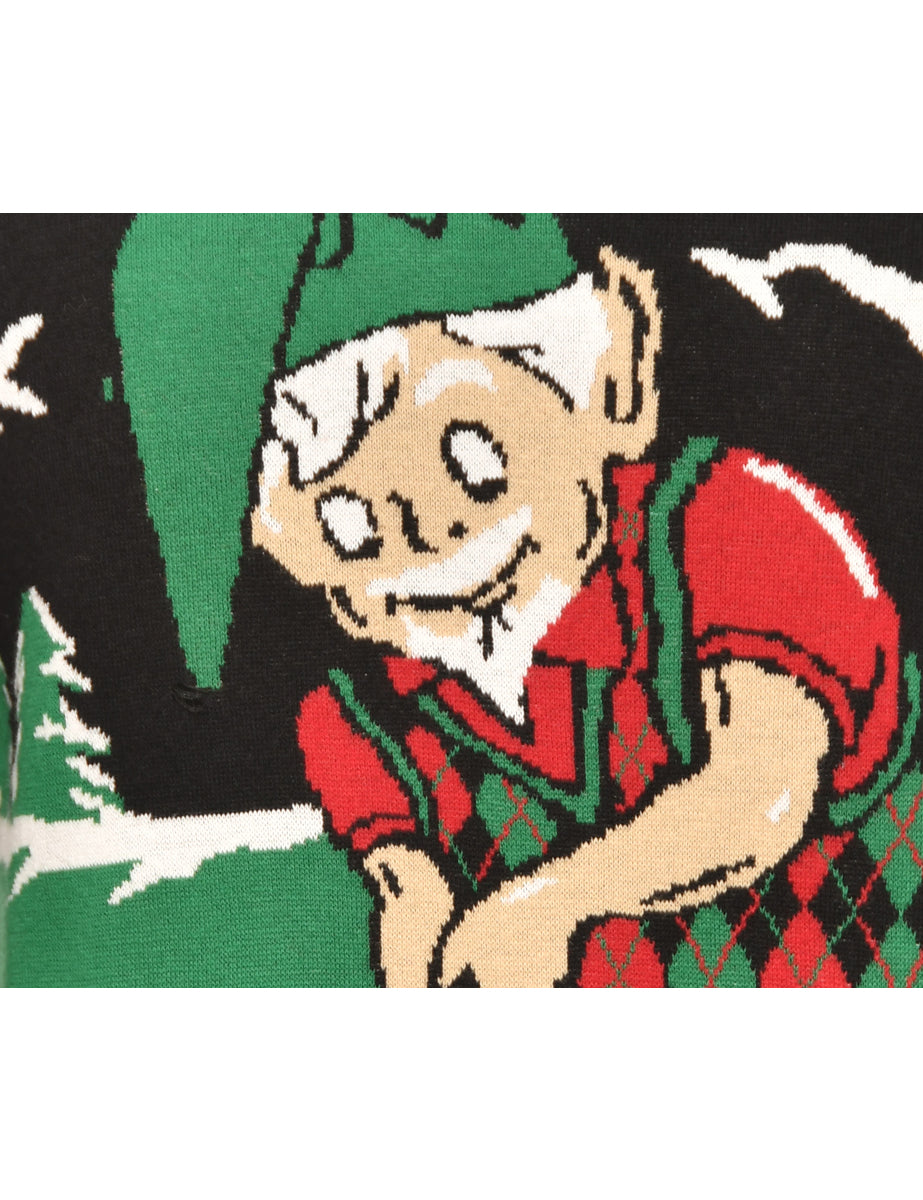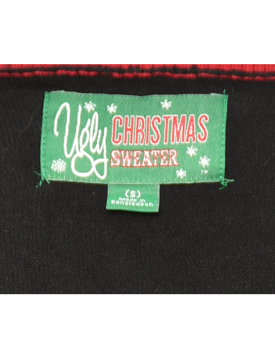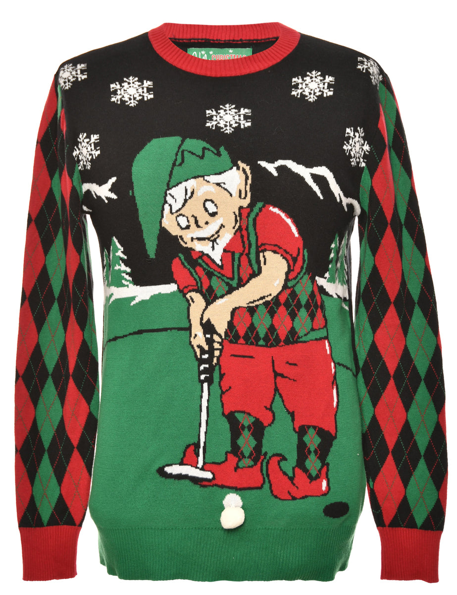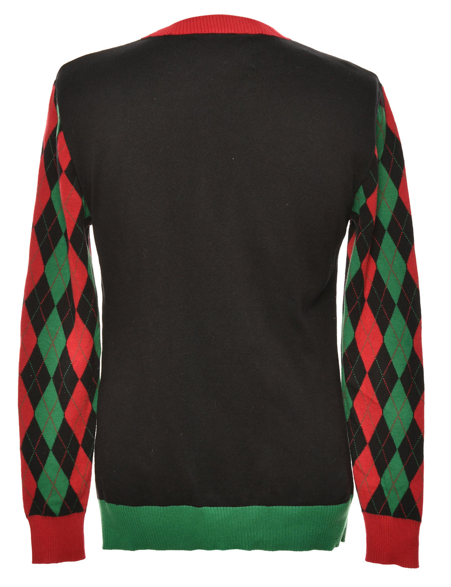 Black, Red & Green Argyle Design Christmas Jumper - S