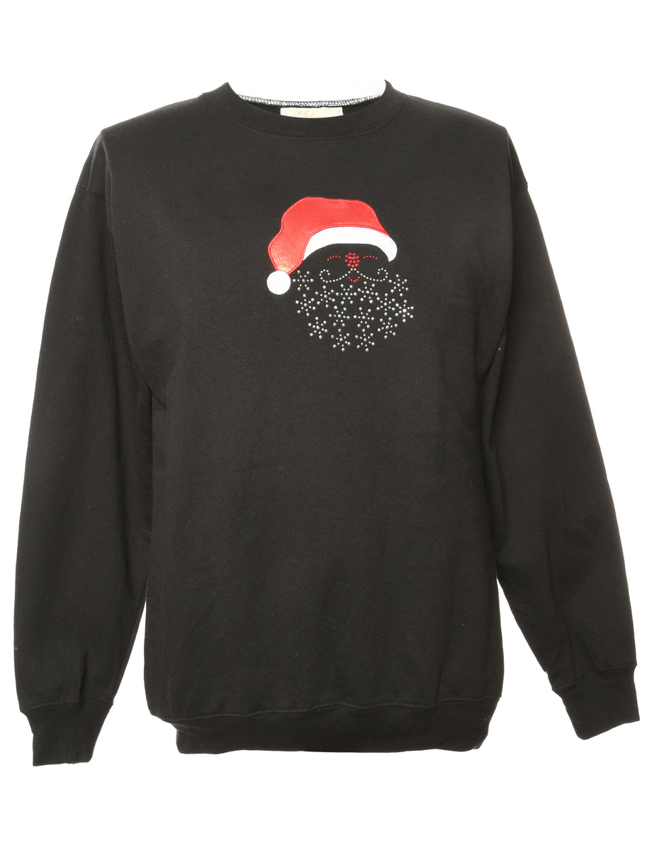 Father Christmas sweatshirt comes in black with a ribbed neck and cuffs.