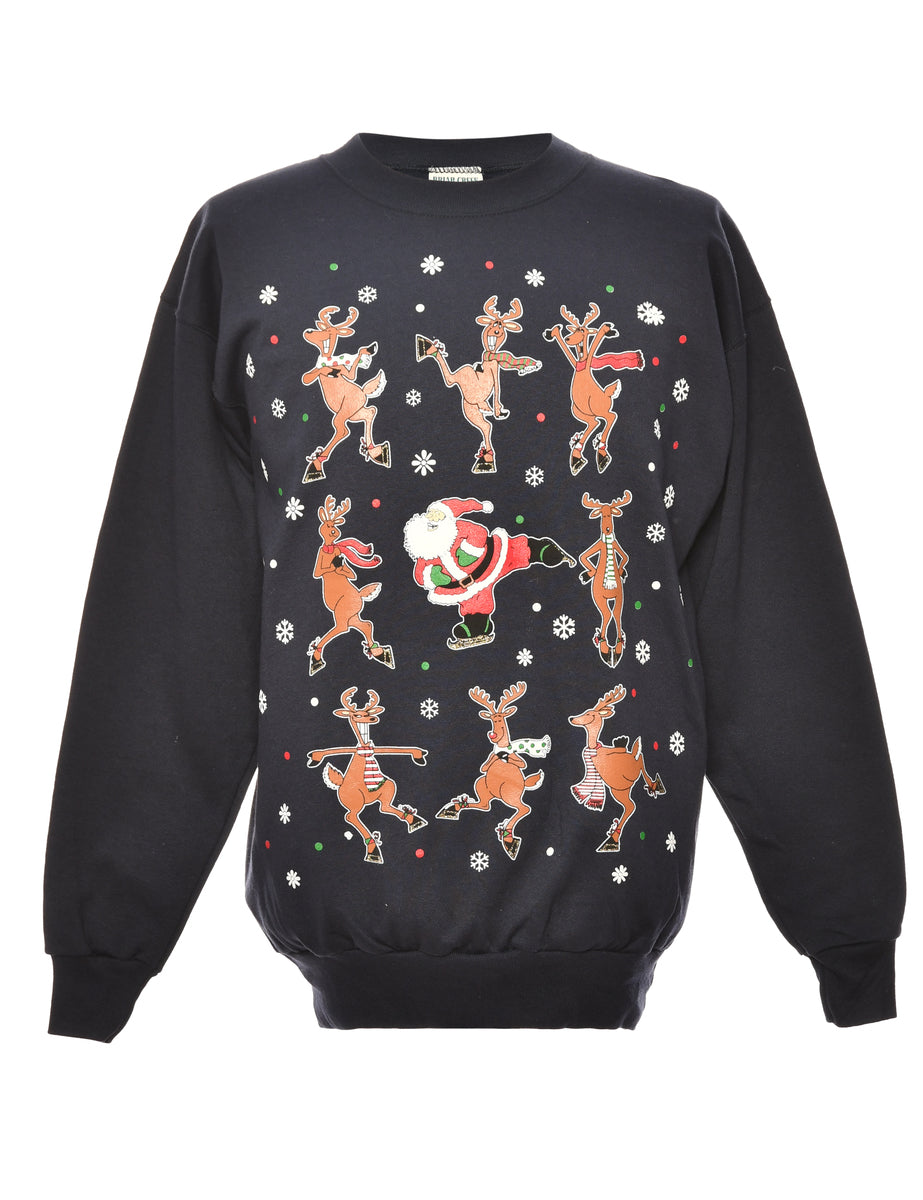 Santa Claus Christmas sweatshirt in black complete with a round neck.