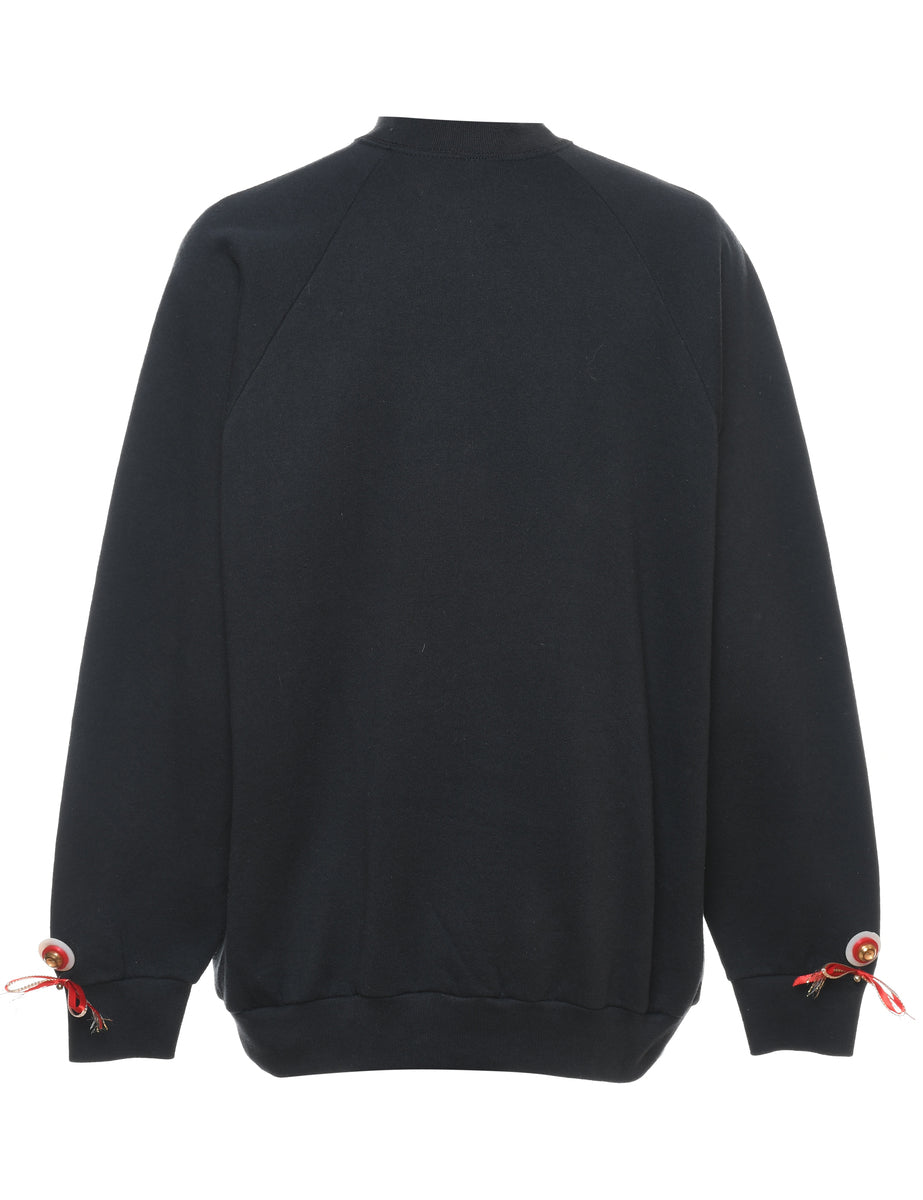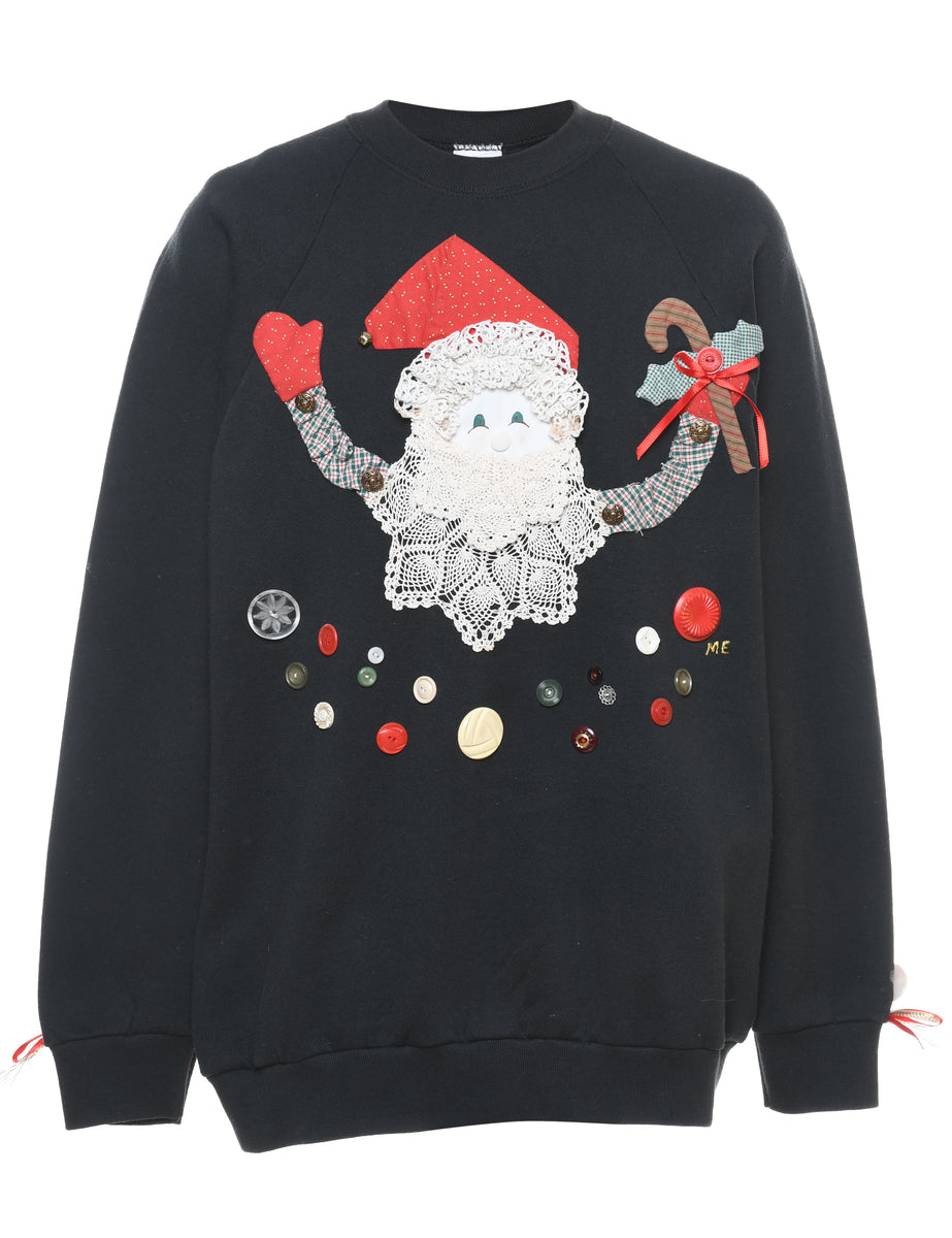 Santa claus christmas sweatshirt in black with an applique design and raglan sleeves.
