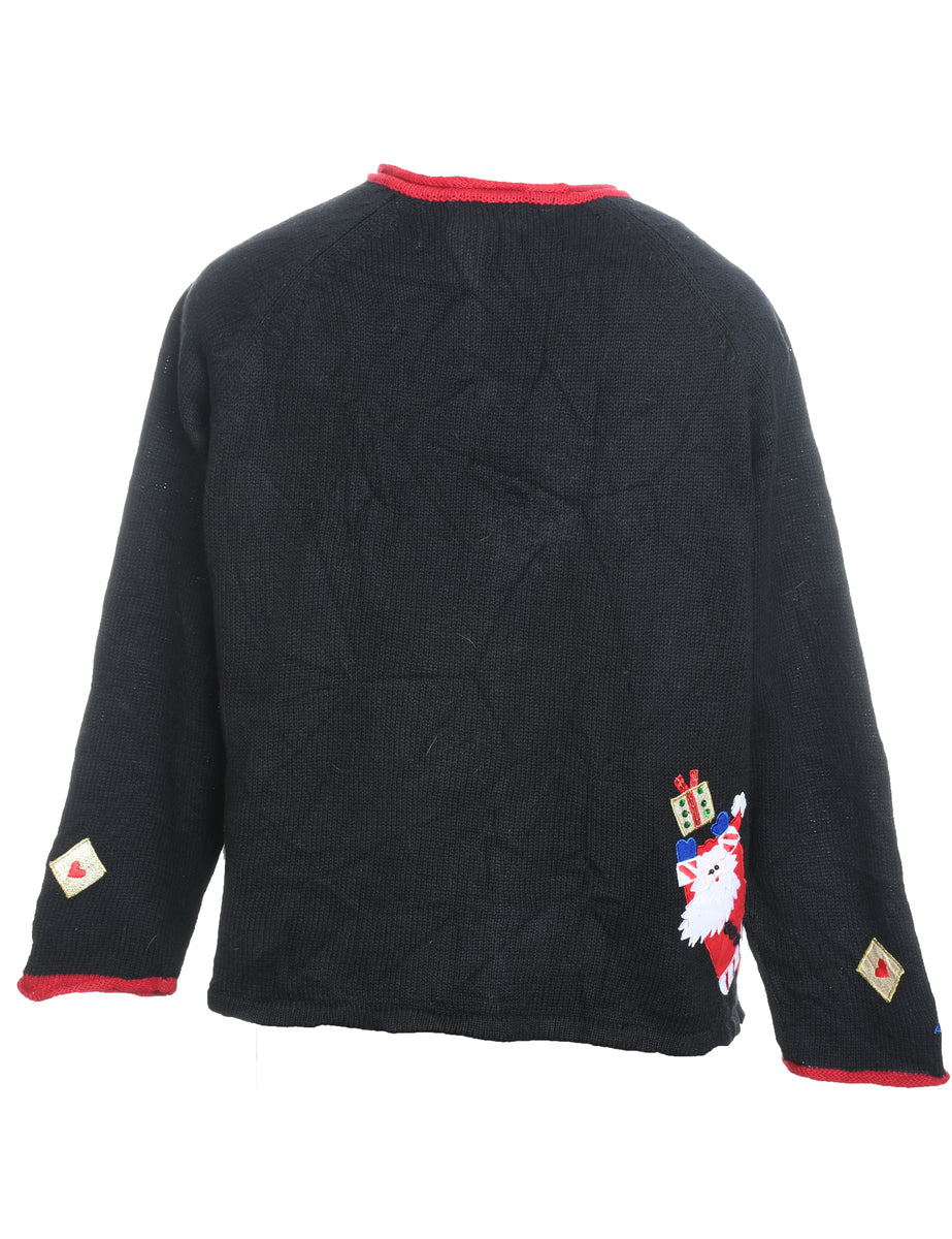 Santa Claus Design Black Appliqued Christmas Jumper - M