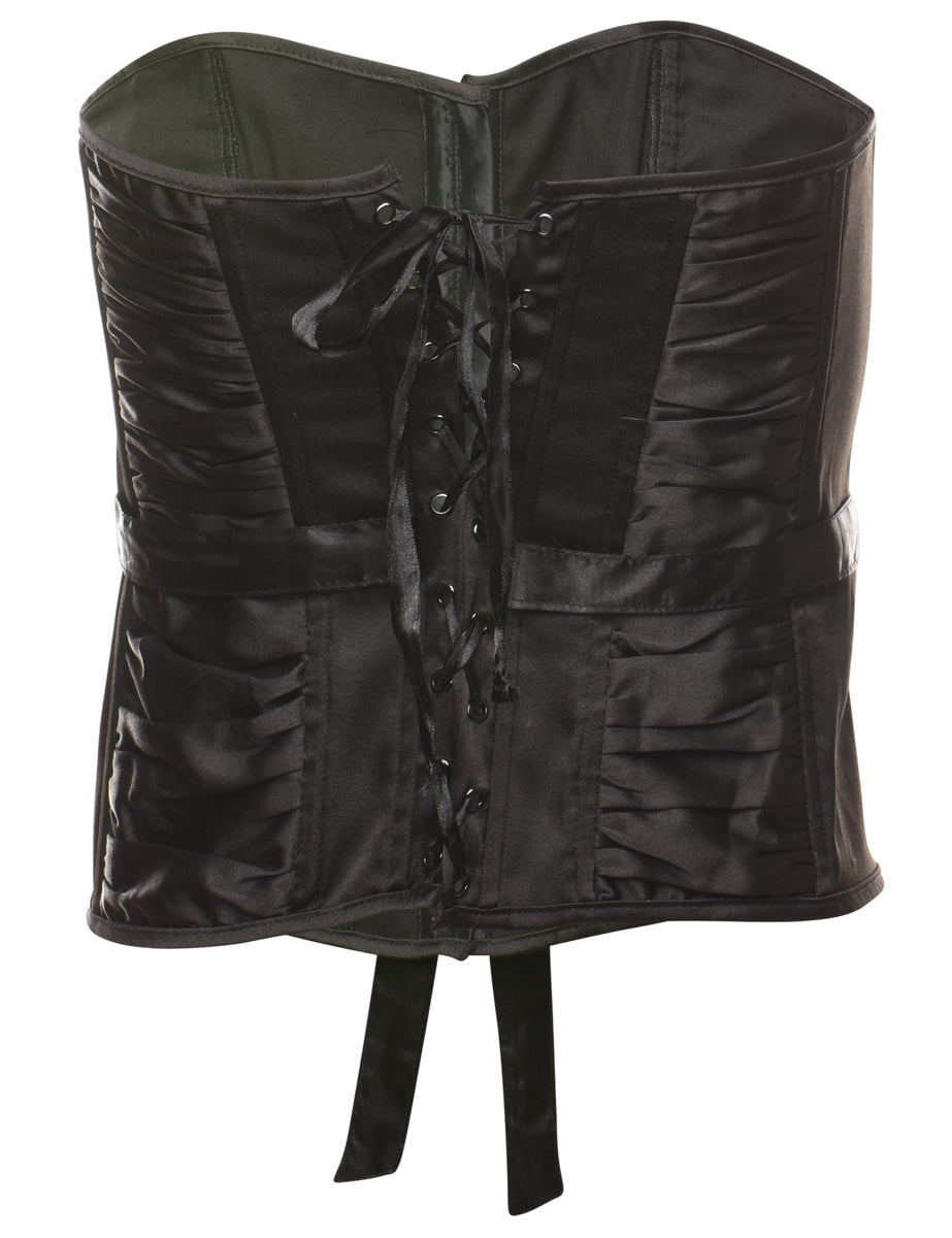 Black classic boned corset complete with ruched detailing.