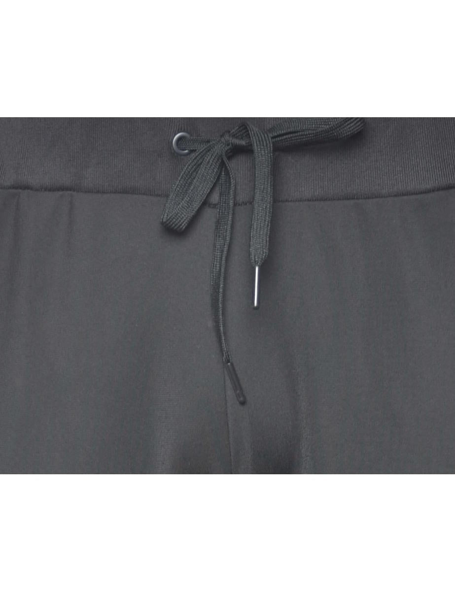 Tapered jogging bottoms in black with multiple pockets and a drawstring waist. From the brand Adidas.