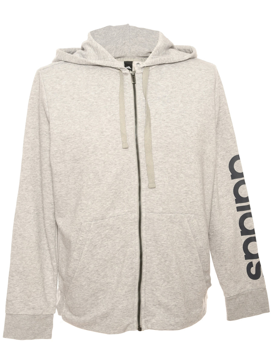 Vintage Grey Adidas Printed Hoodie - M