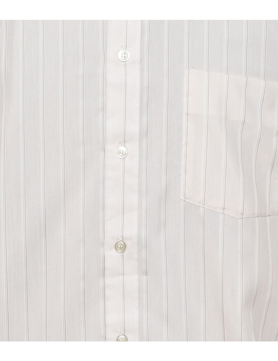 Striped short sleeved shirt in off white with a classic collar and one pocket.