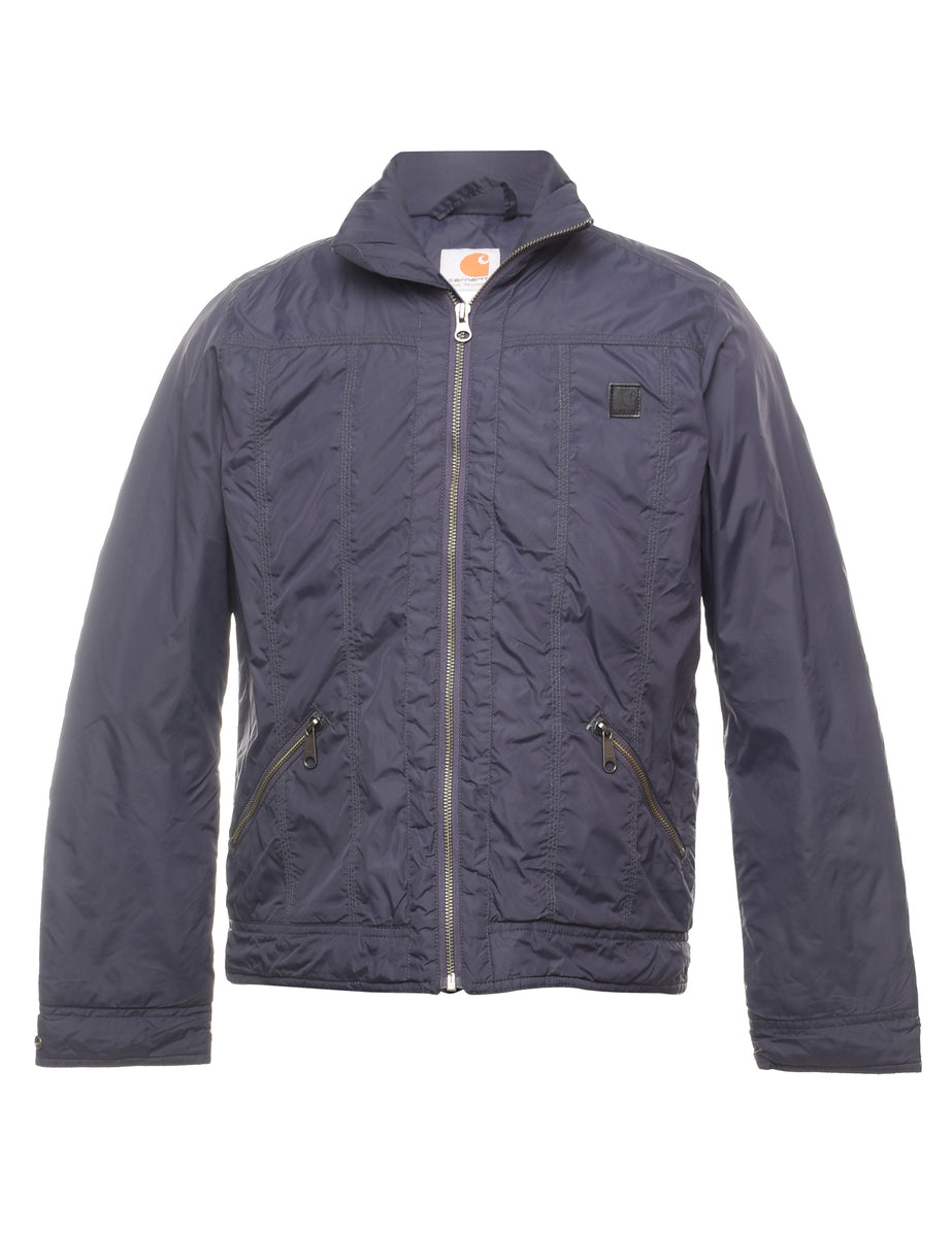 Navy zip-front nylon jacket complete with full lining and multiple pockets. From the brand Carhartt.