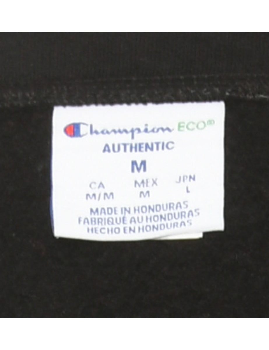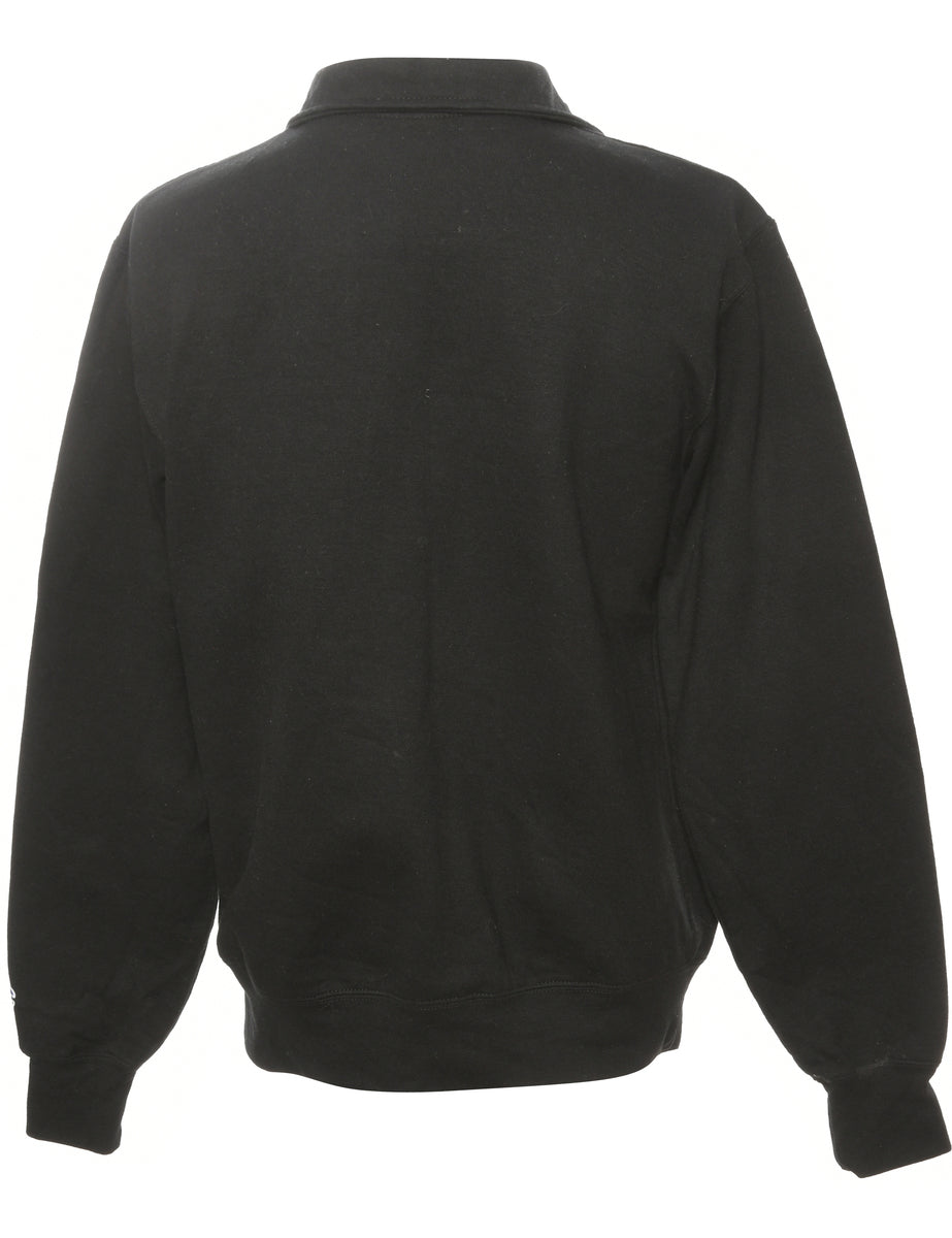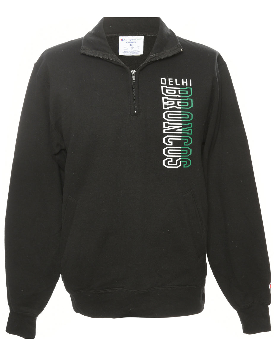 Quarter zip printed sweatshirt comes in black with two pockets from the brand Champion.