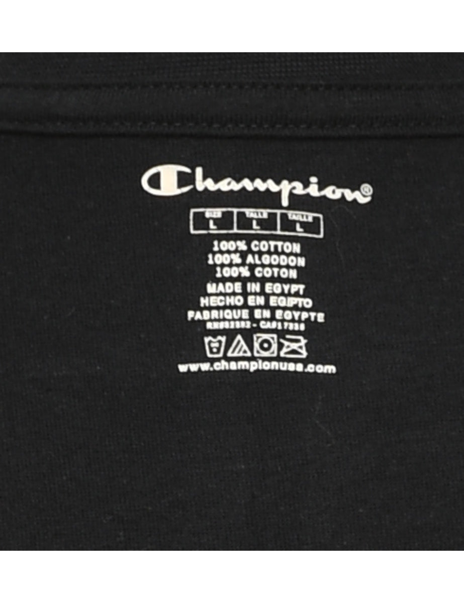 Vintage Champion Plain Black Long-Sleeve T-shirt - M