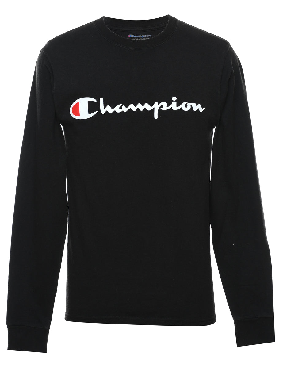 Vintage Champion Printed Black Long-Sleeve T-shirt - S