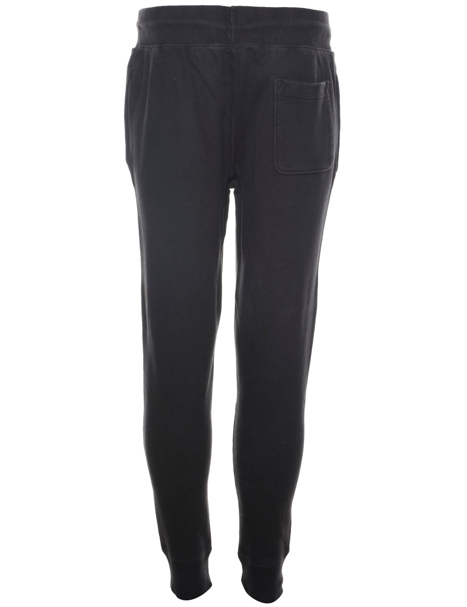 Champion black reverse weave jogging bottoms complete with multiple pockets and a drawstring waist.