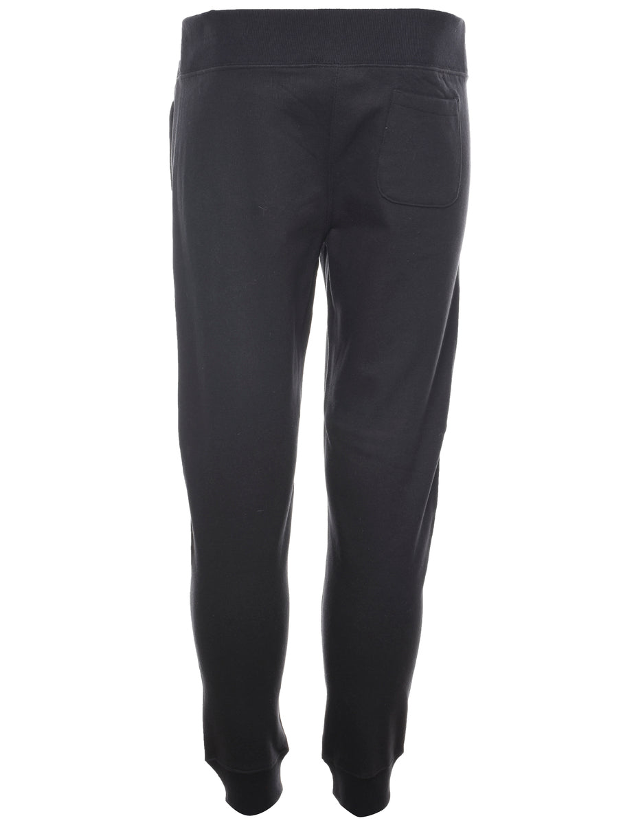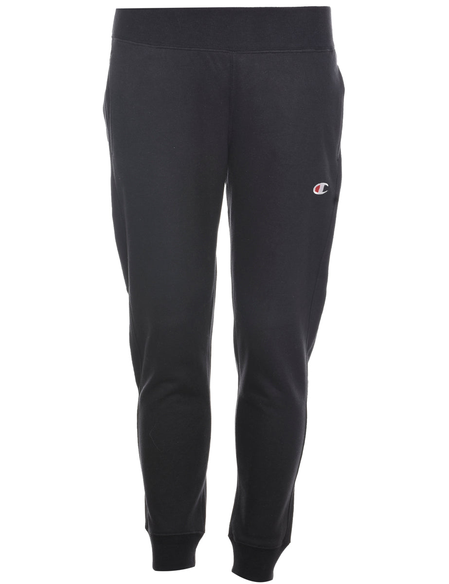 Black Champion reverse weave jogging bottoms complete with multiple pockets and an elasticized waist.
