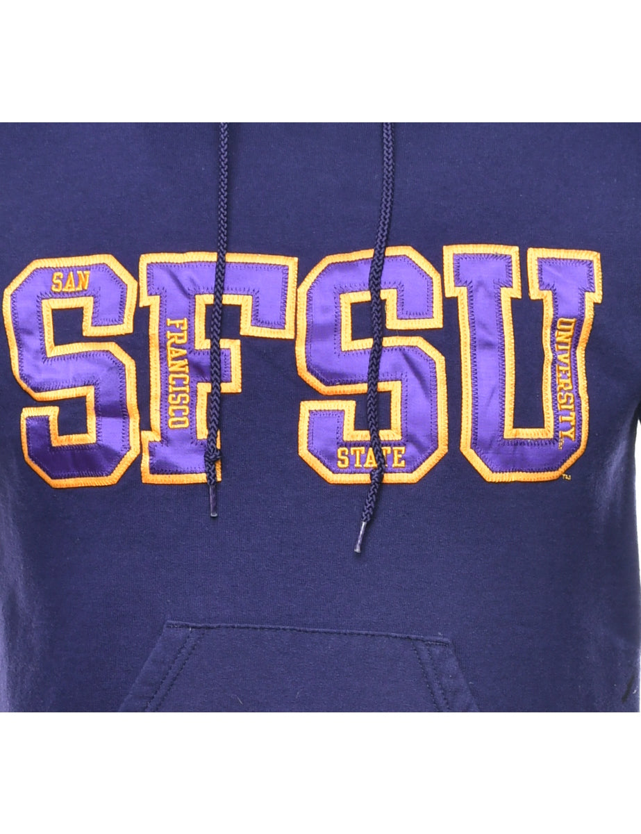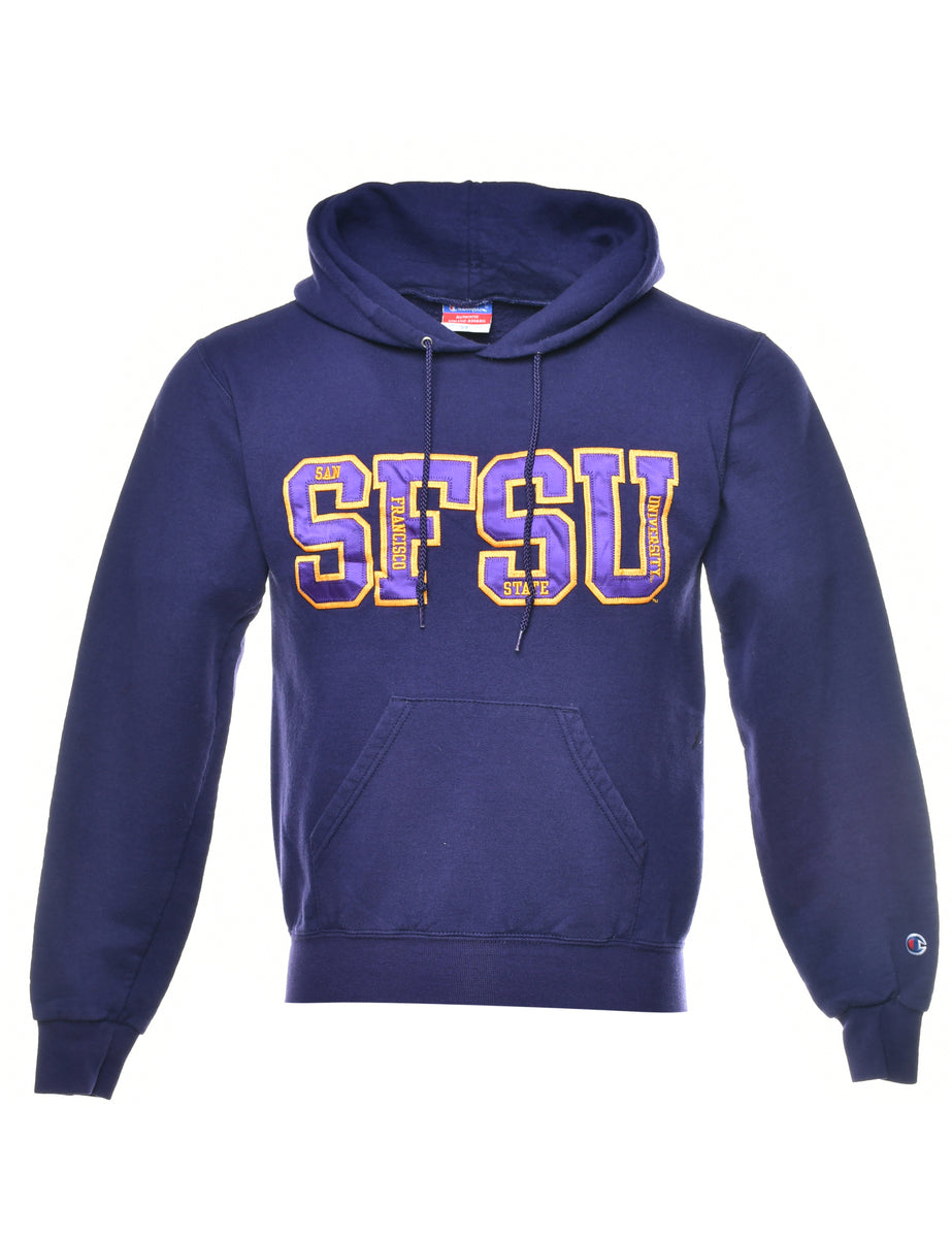 Champion SFFU printed sweatshirt in purple with a hood and ribbed cuffs and waistband.