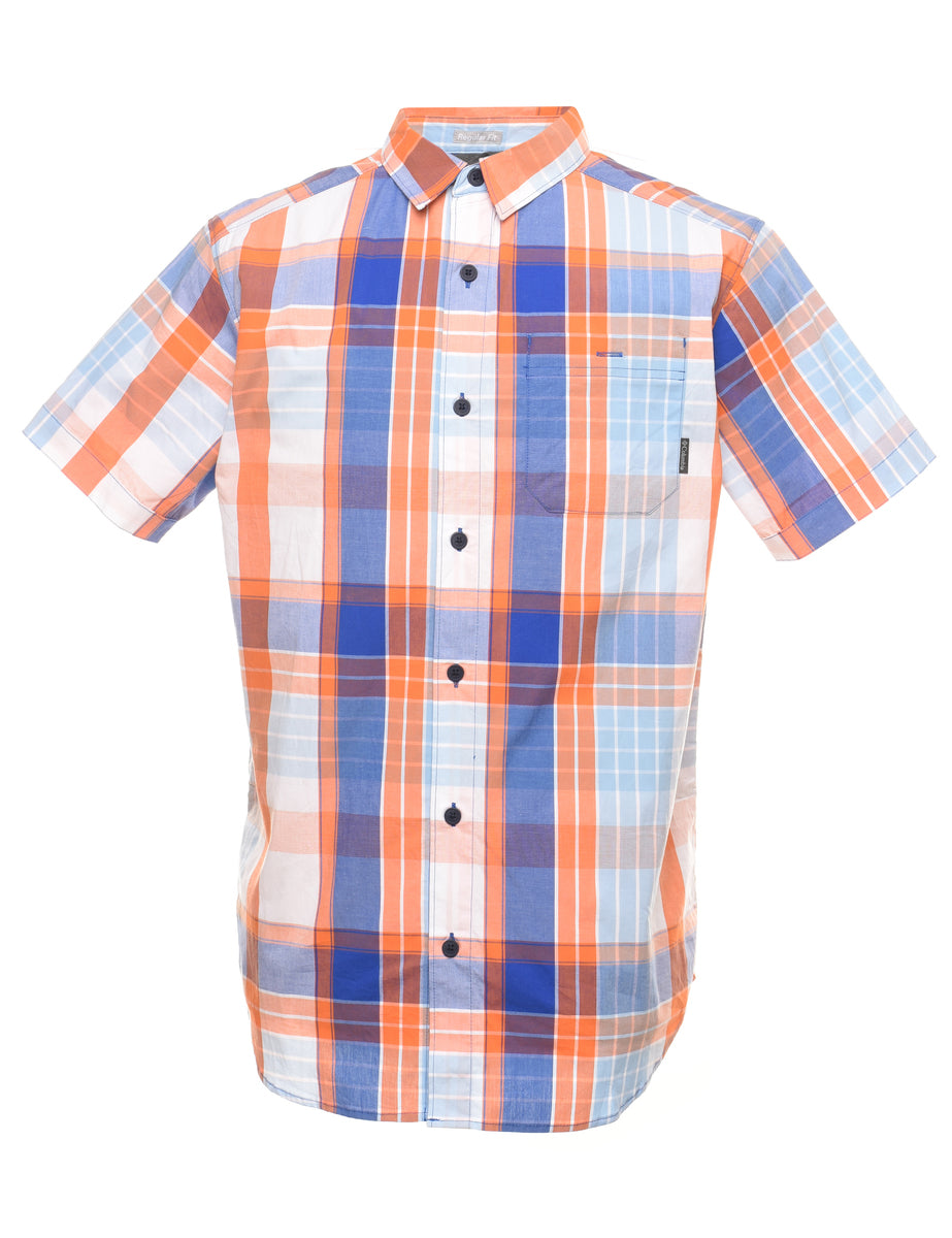 Shor-sleeve checked orange, blue & white shirt complete with one pocket. From the brand Columbia.