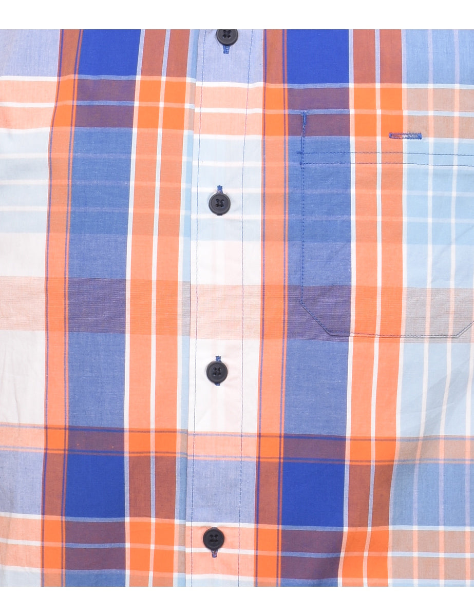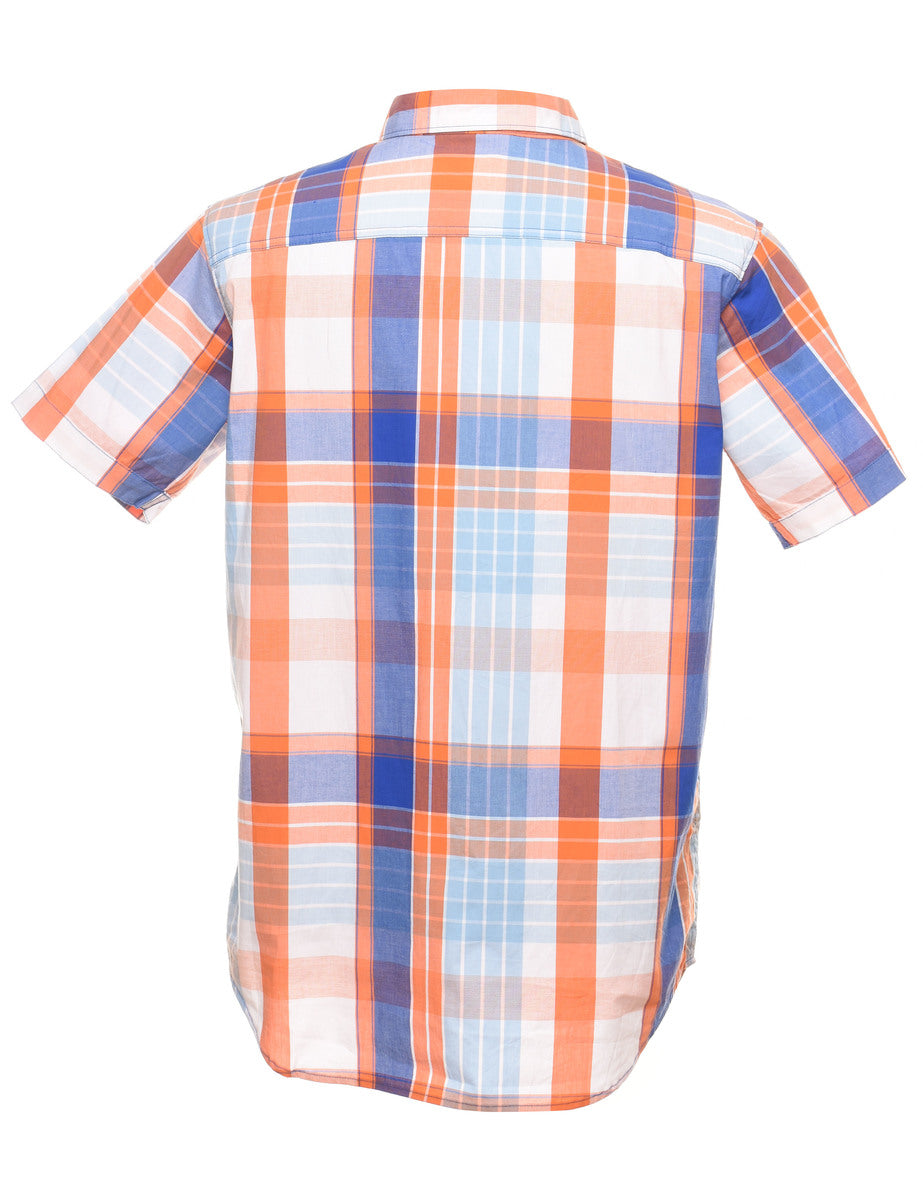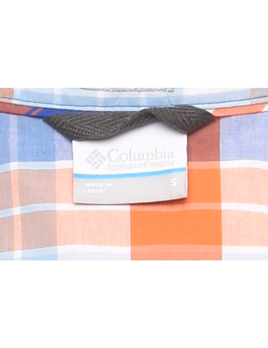 Vintage Columbia Blue, Orange & White Checked Shirt - S