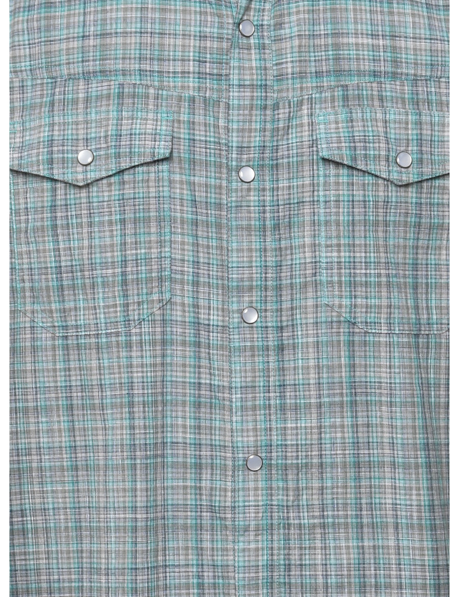 Short sleeve checked shirt. Comes in green with flap pockets.