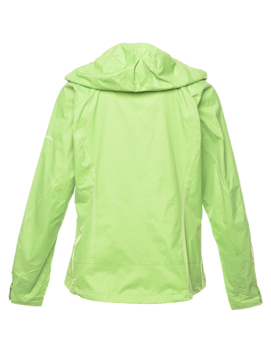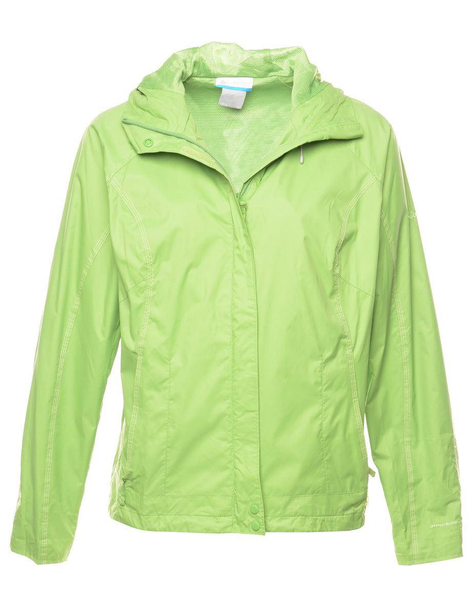 Hooded nylon jacket in green with full lining and zippered pockets. From the brand Columbia.