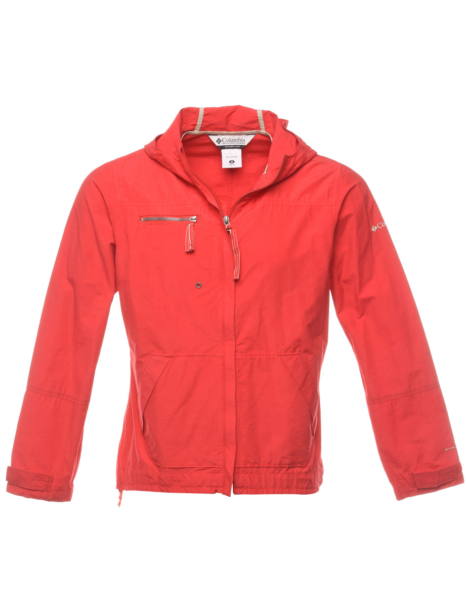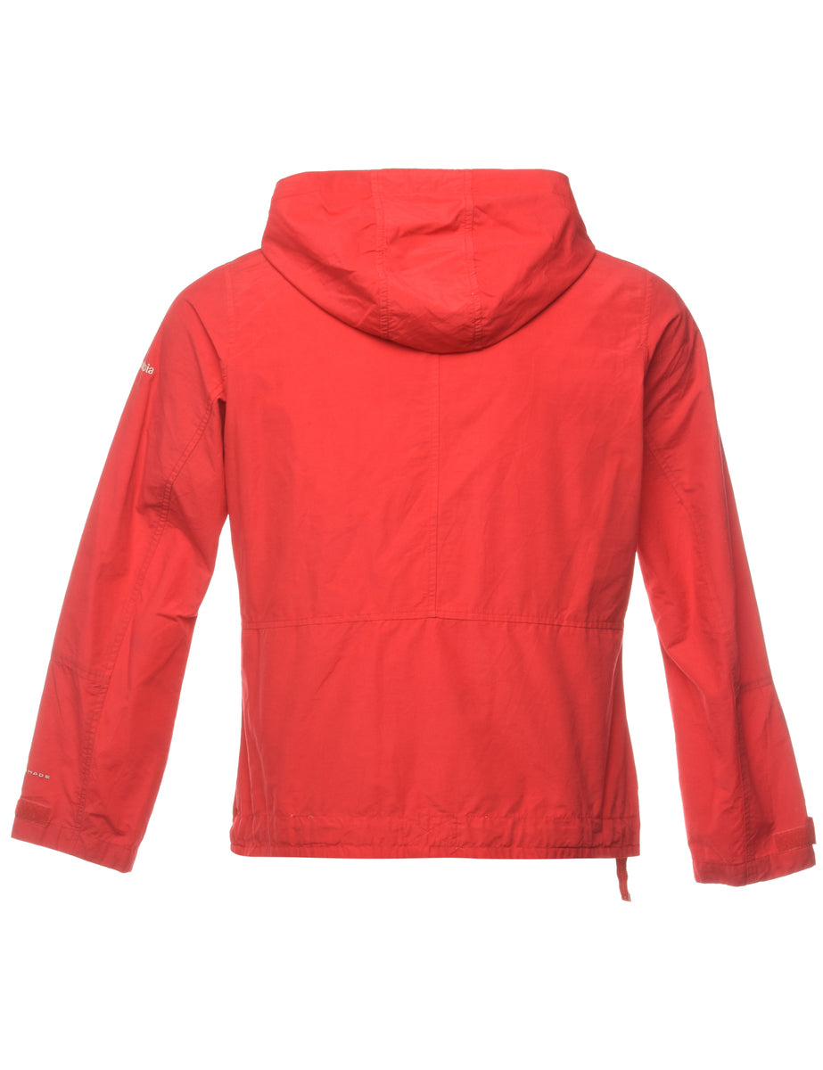 Hooded nylon jacket in red with pockets. From the brand Columbia.