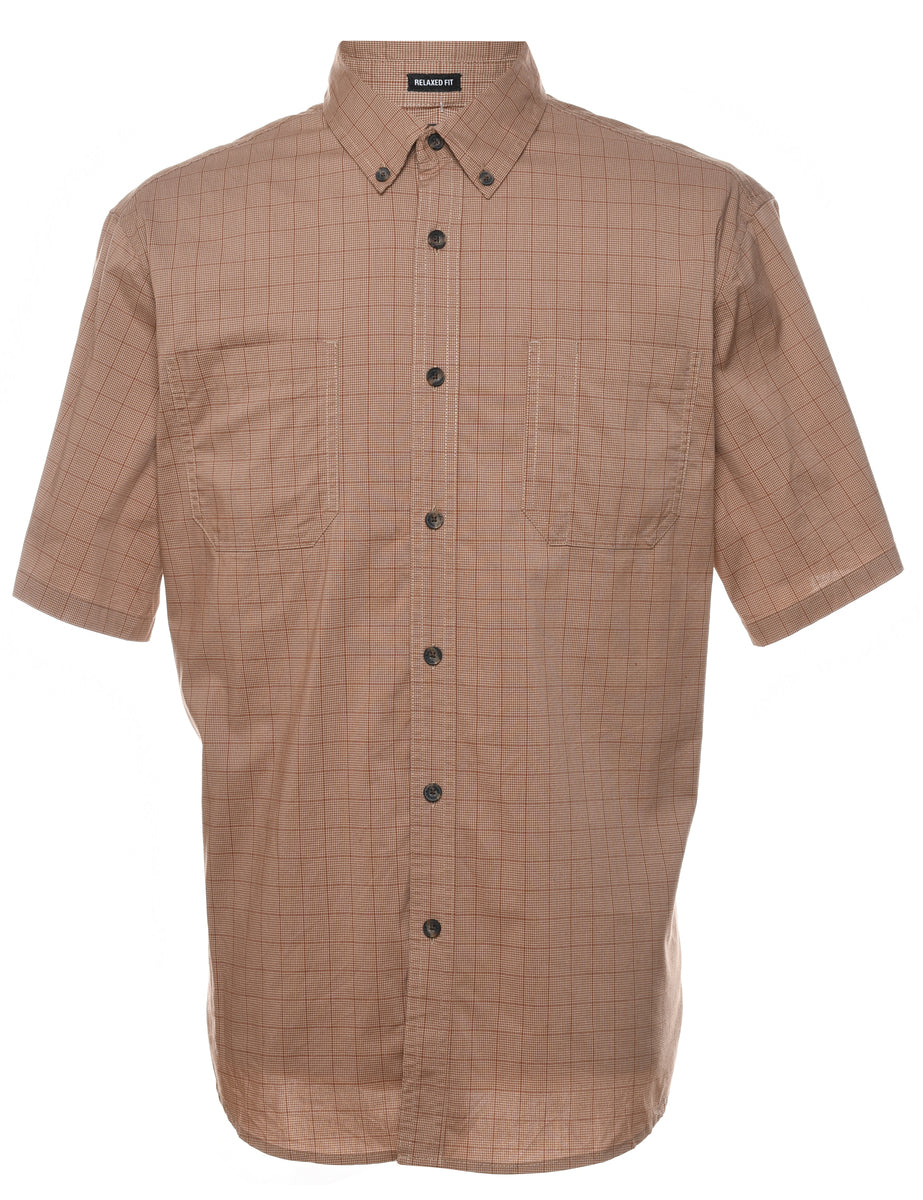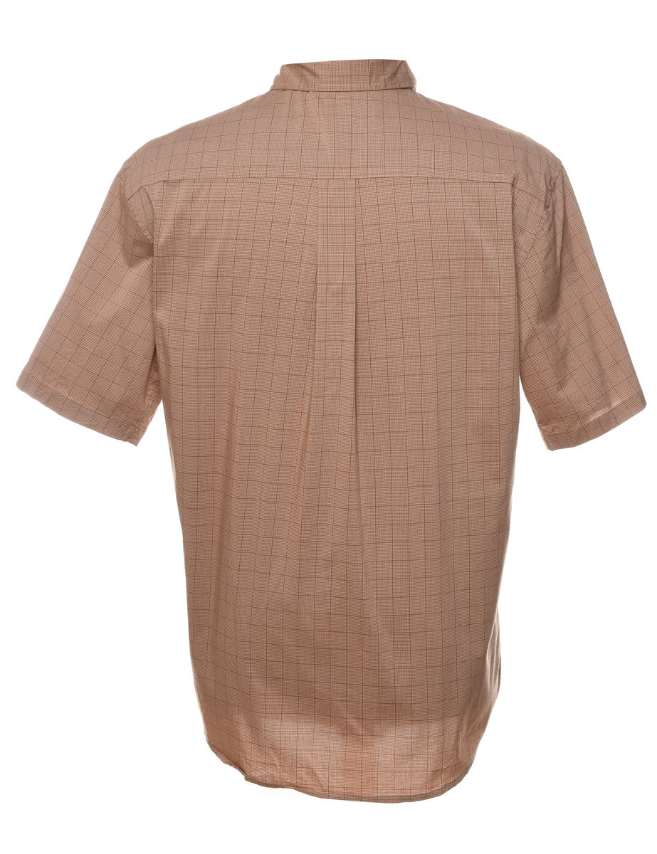 Short sleeve light brown checked Dickies shirt with one pocket.