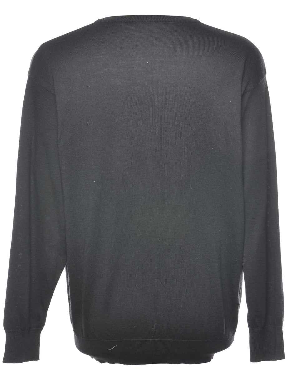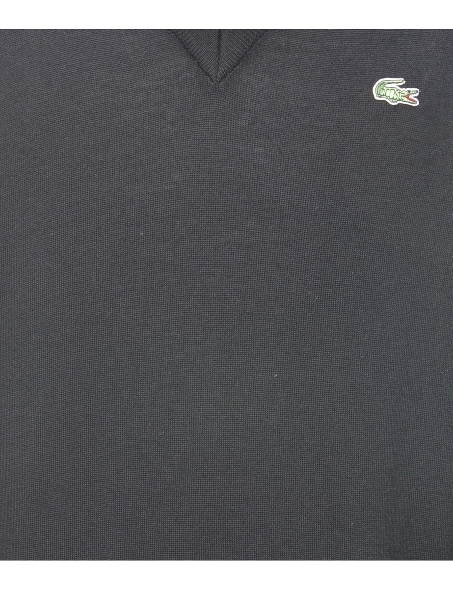 Lacoste long sleeved jumper. Comes in black with a v-neck and a drop shoulder.
