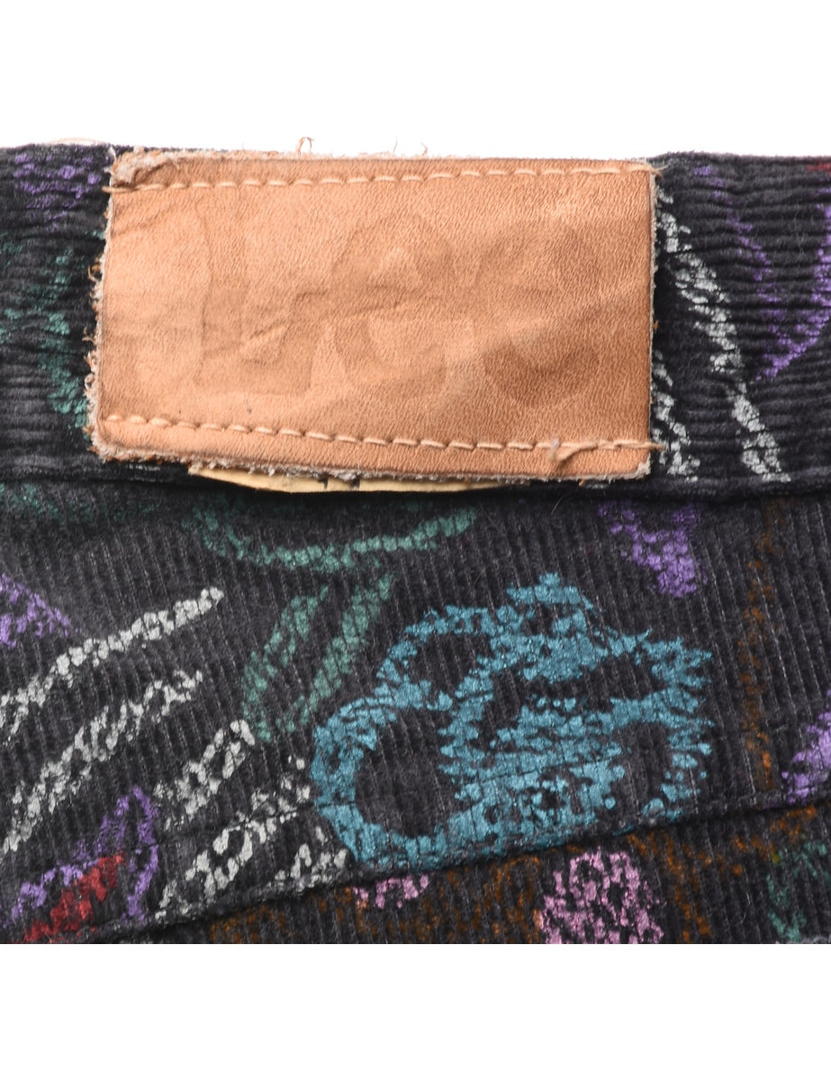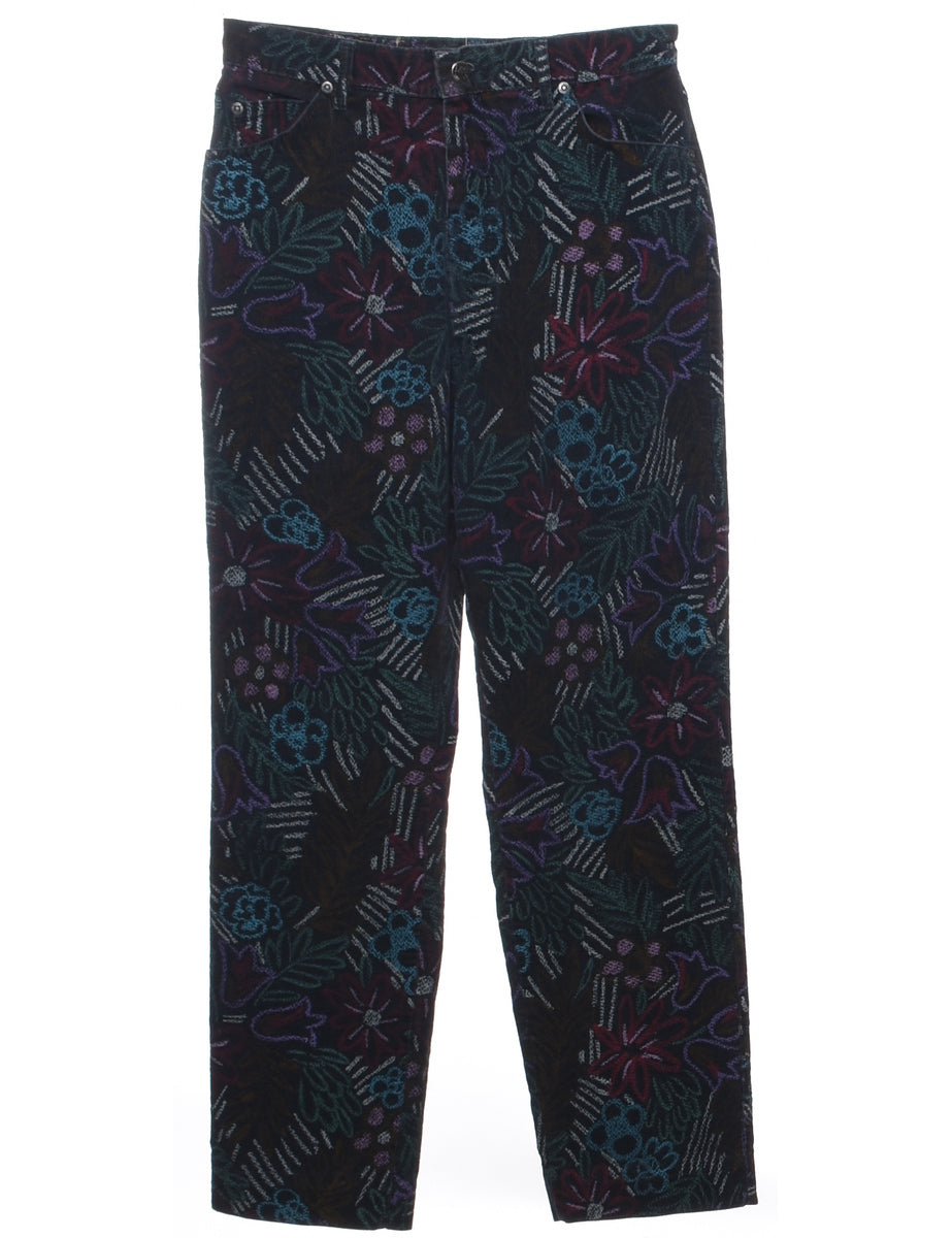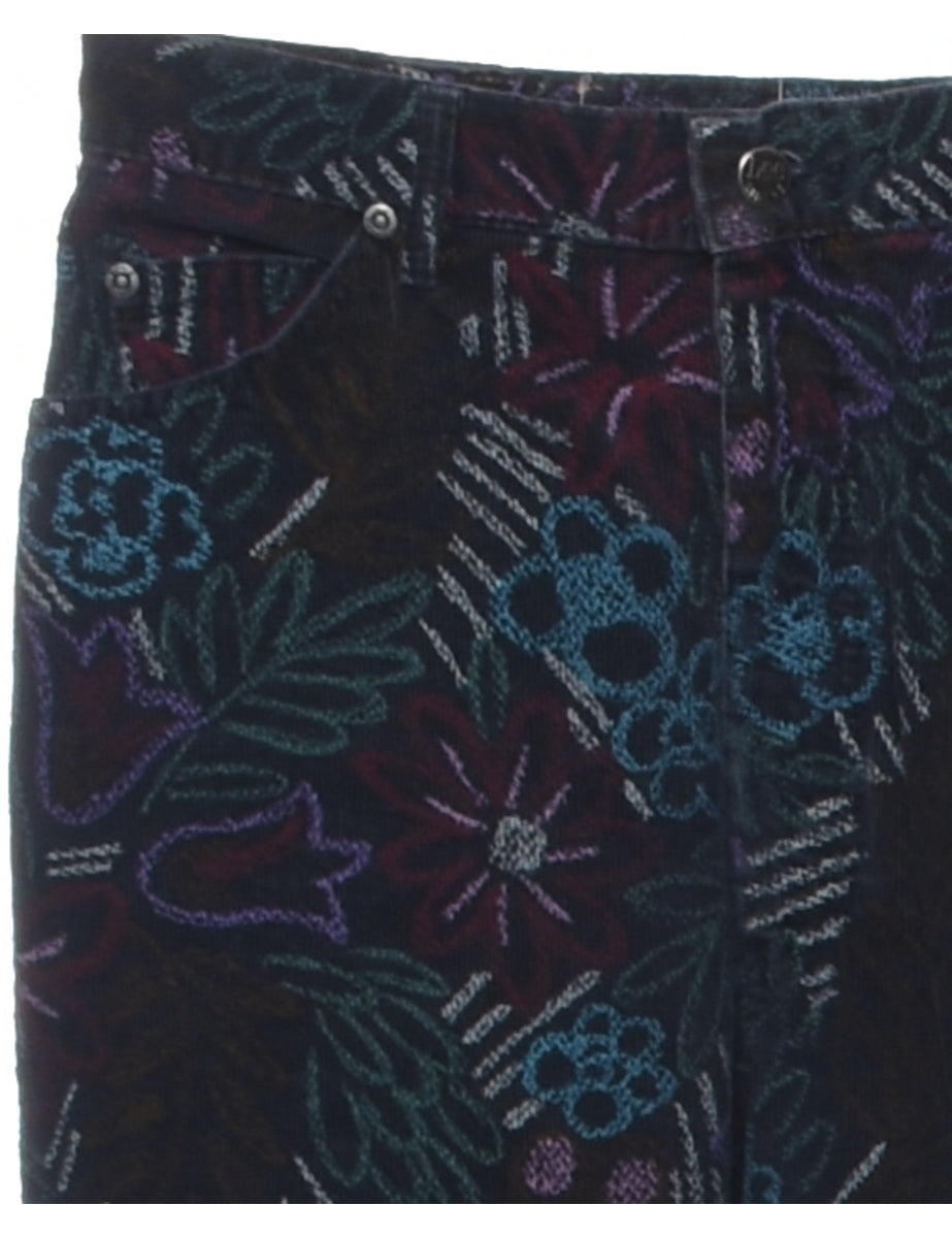 Floral print trousers with corduroy fabric comes in black with multiple pockets.