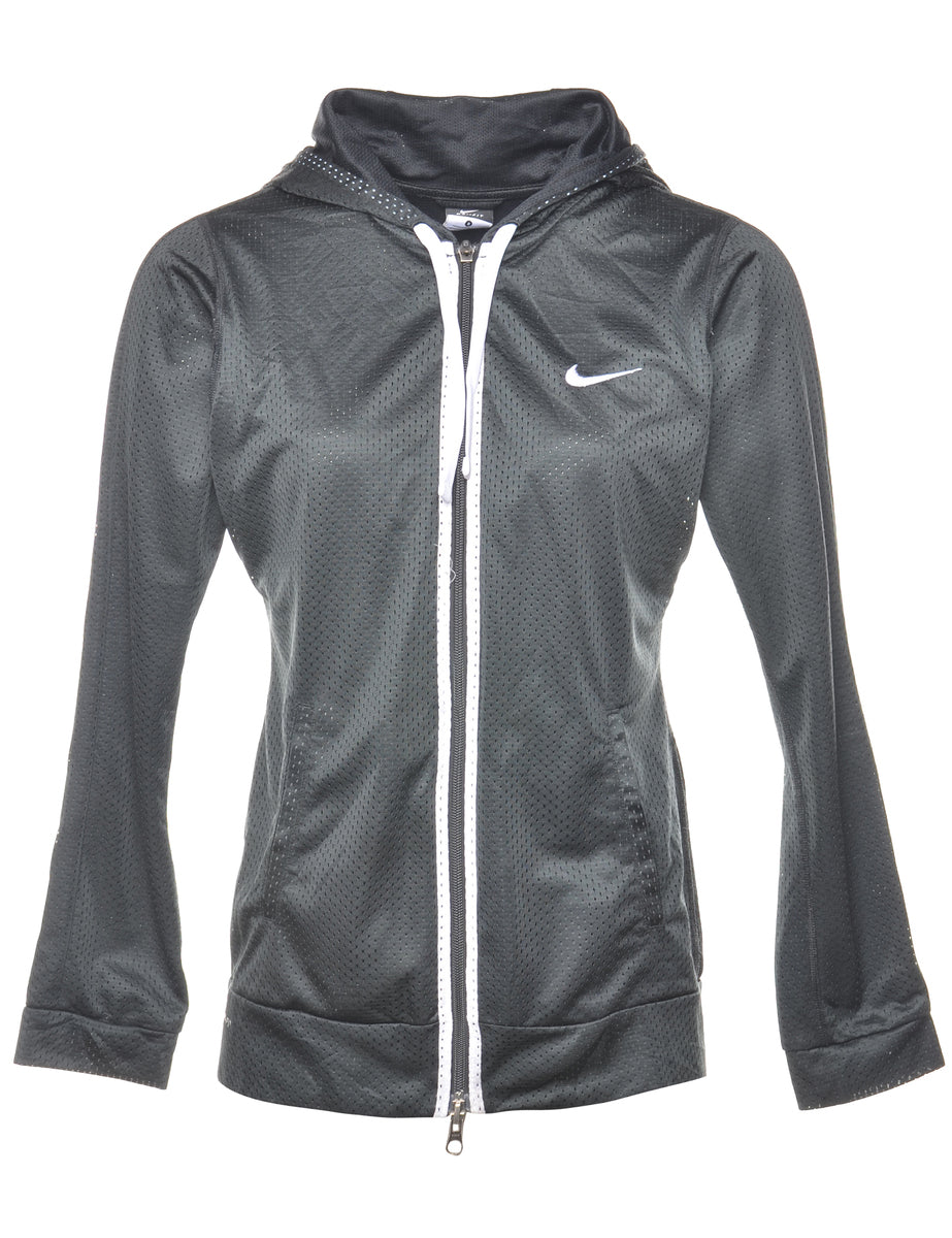 Nike hooded track jacket in black with slash pockets.