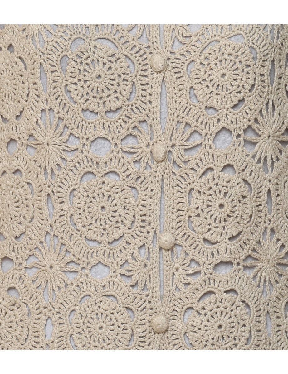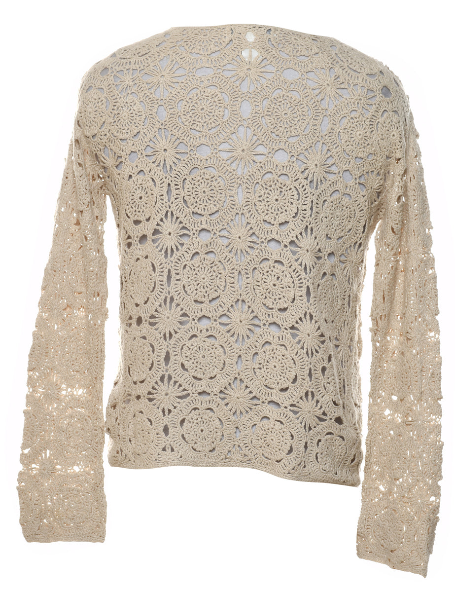Vintage Pierre Cardin Floral Knit Crochet Cardigan - M