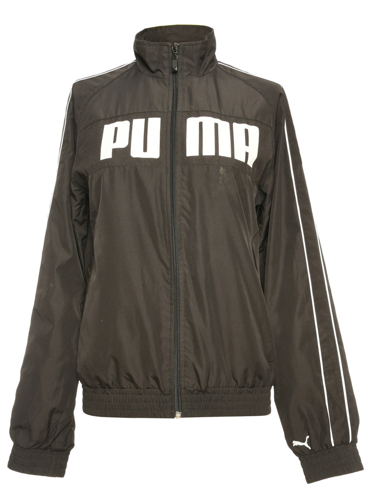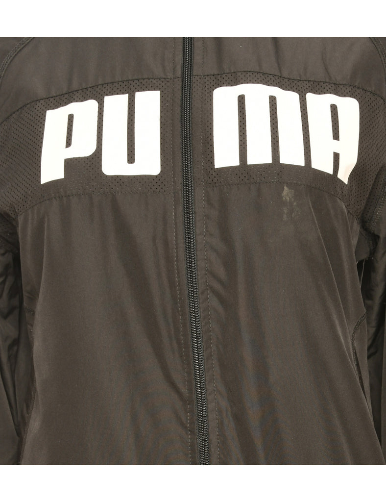 Puma zip front nylon jacket in black & white with full lining and multiple pockets.