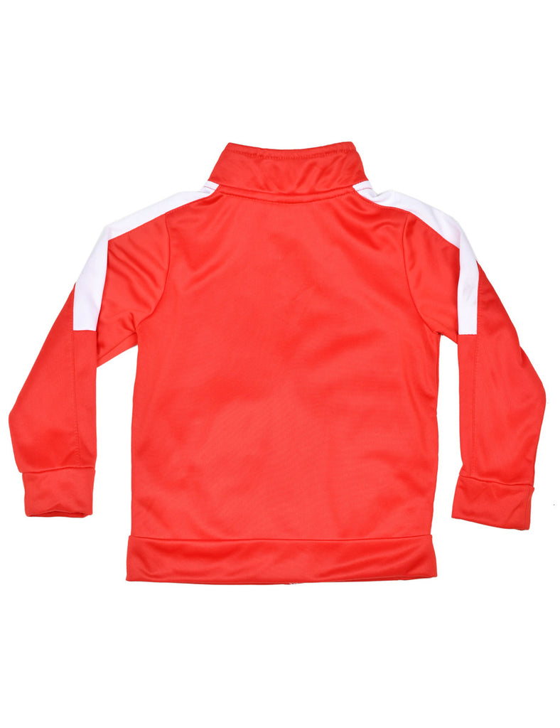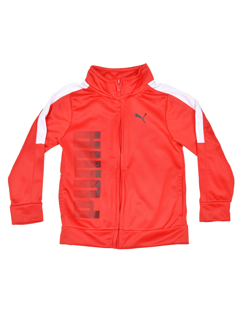 Sports track jacket in red with contrasting panels and front zip. From the brand Puma.