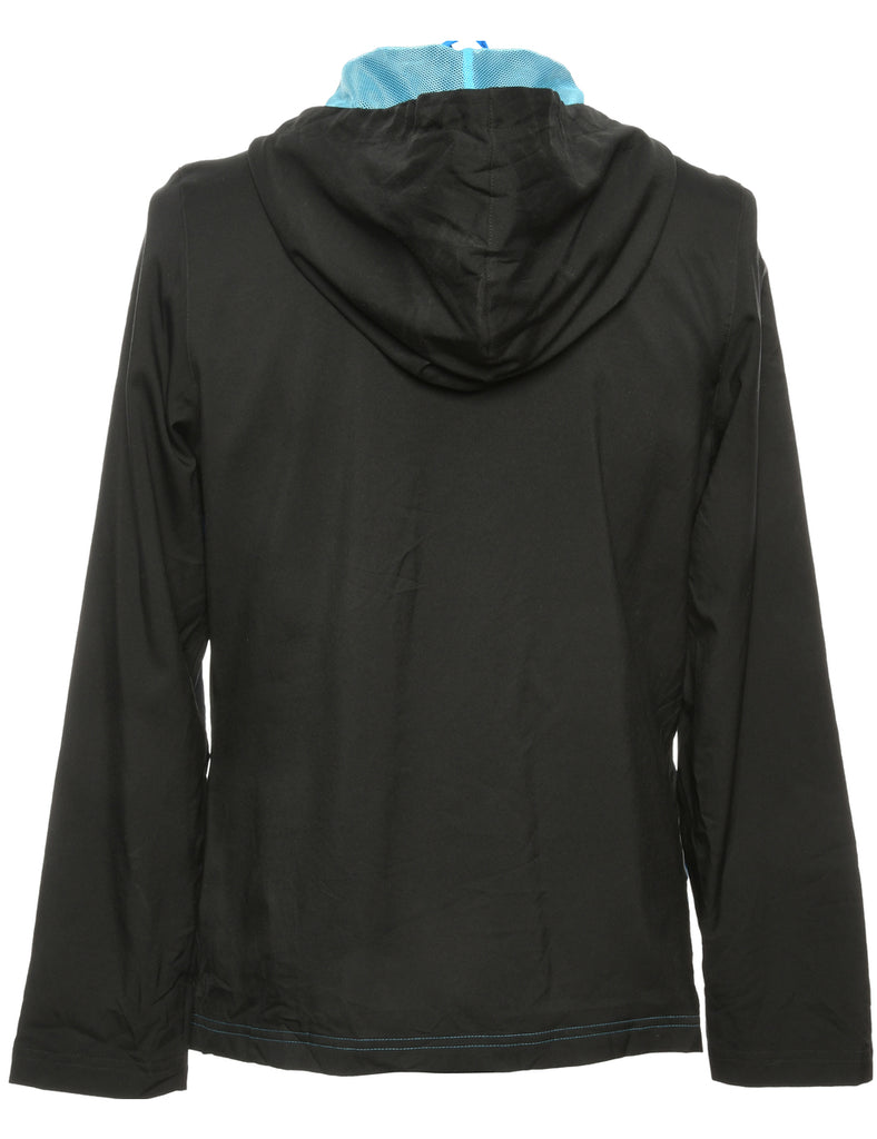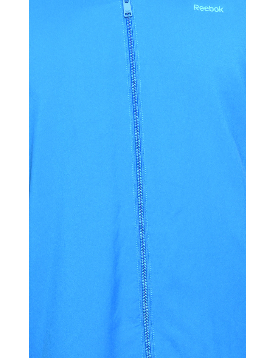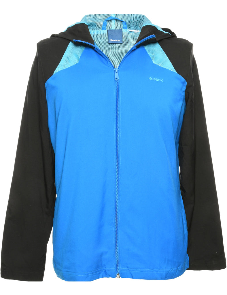 Hooded jacket comes in blue with two pockets from the brand Reebok.