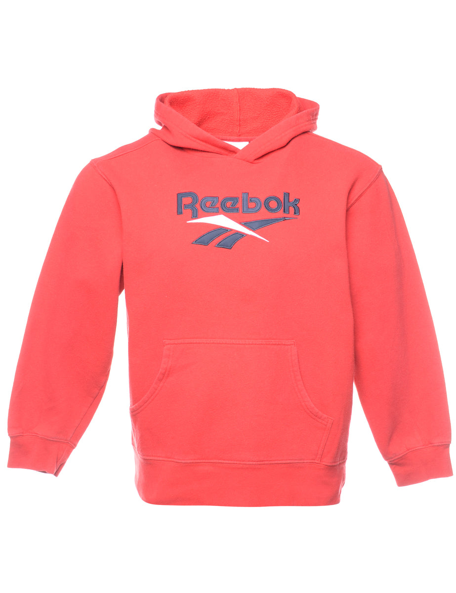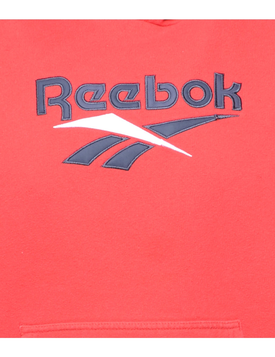 Reebok embroidered sweatshirt in red with a hood and one pocket.