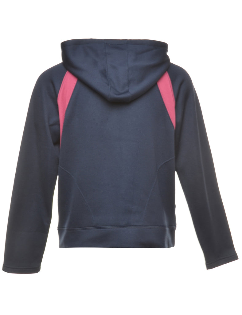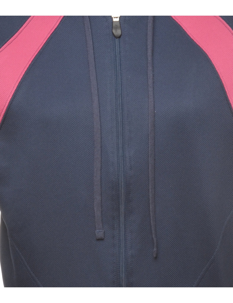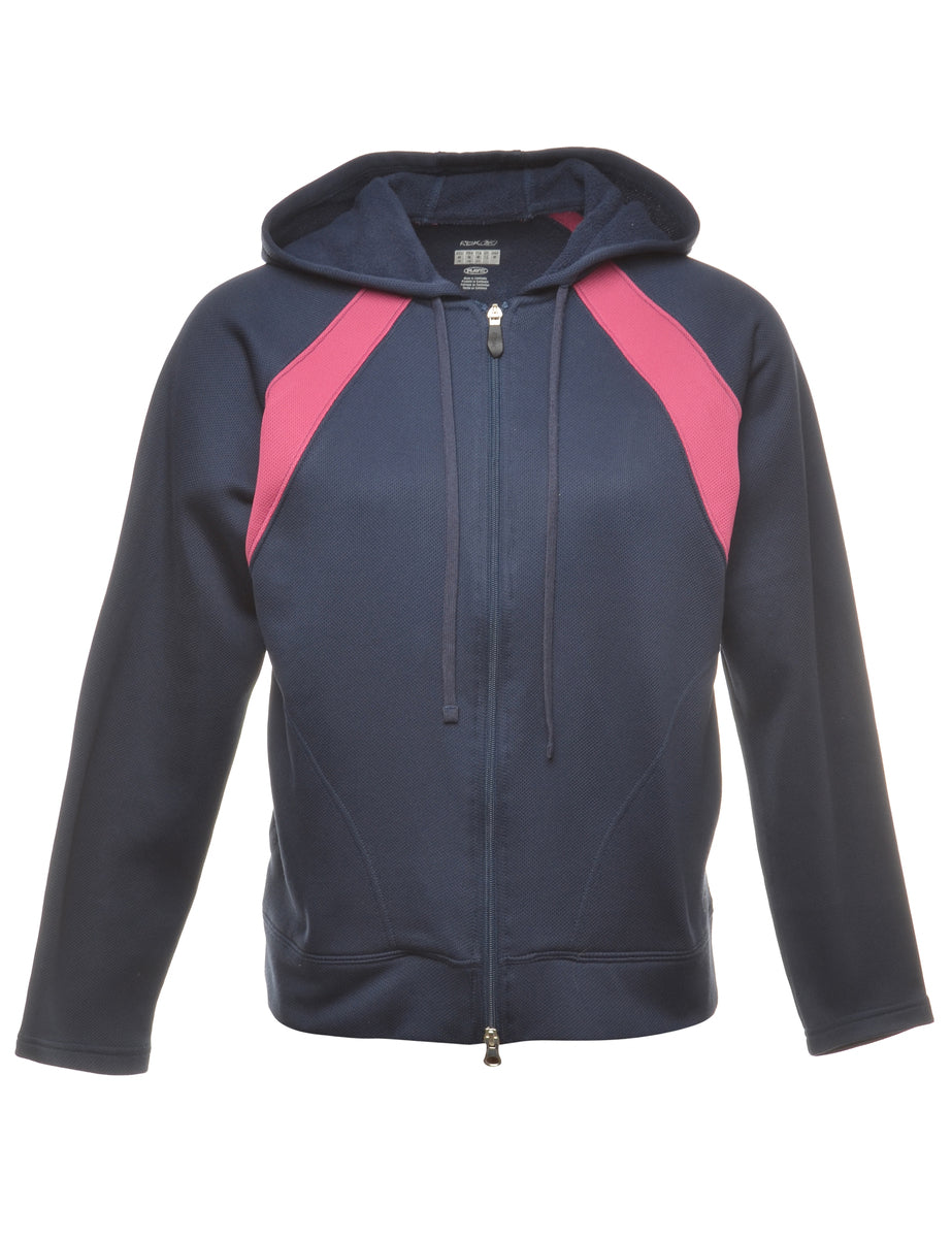 Reebok hooded track top. Comes in navy with two pockets and raglan sleeves.