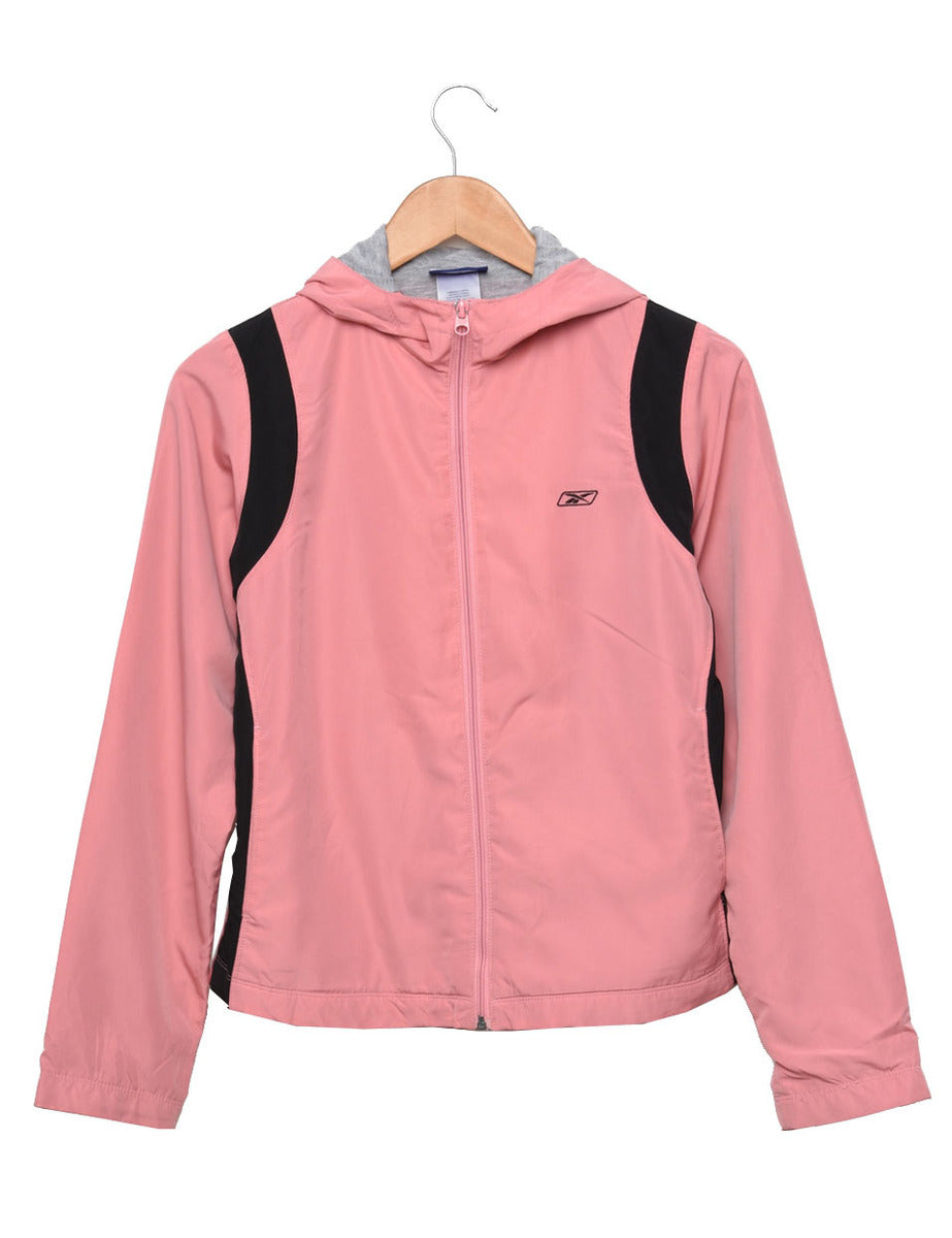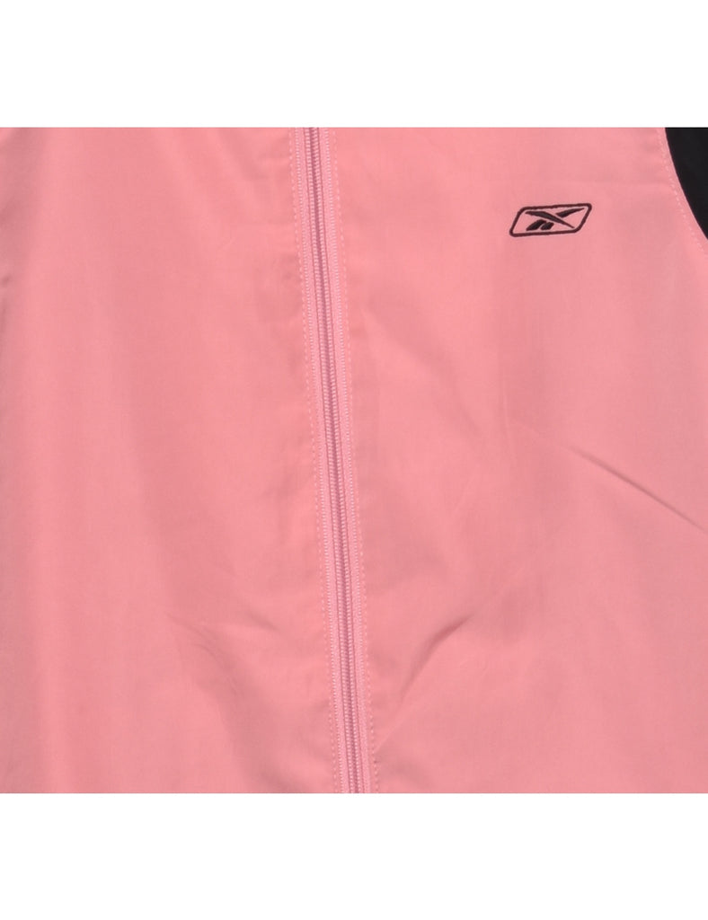 Reebok jacket in pink with full lining and multiple pockets.