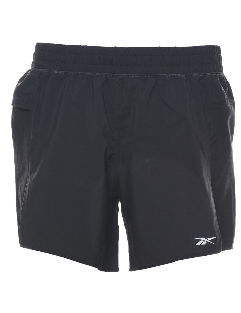 Reebok sports shorts in black with one pocket and a drawstring waist.