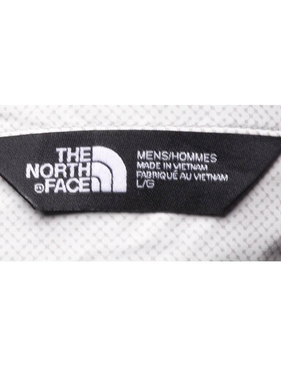 The North Face zip front jacket in navy with a hood and multiple pockets.